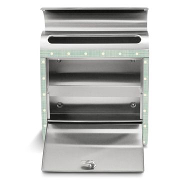 Der banjado Edelstahl Standbriefkasten mit Motiv Punkte Lindgrün und eigenem Wunschtext bietet Ihnen mit seinem Fassungsvermögen genügend Platz auch für große A4 Sendungen. Das integrierte Zeitungsfach eignet sich hervorragend, um unkompliziert die Tageszeitung zu fassen.