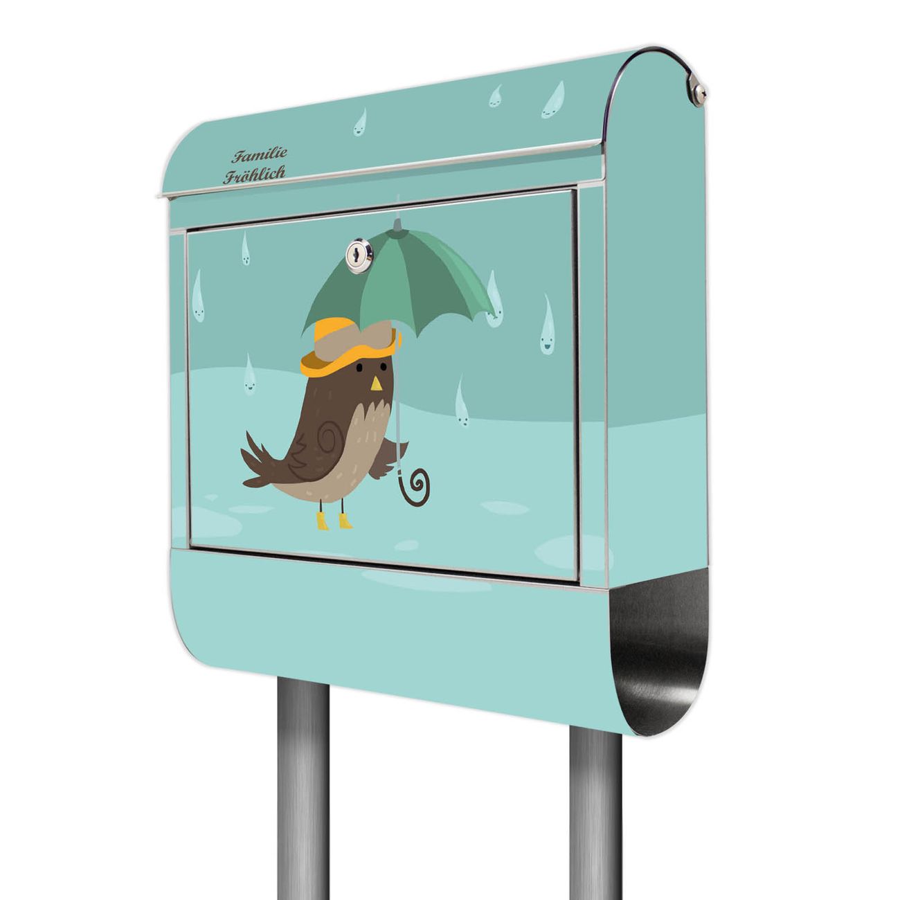 Der Motivstandbriefkasten hat ein sehr ansprechendes und ausgefallenes Design, damit entlocken Sie Ihren Nachbarn und dem Postboten ein Lächeln. Heben Sie Sich ab von der tristen grauen Masse, ohne auf Funktionalität zu verzichten. Der Briefkasten besteht aus hochwertigem 18/0 Edelstahl und die Wetter- und UV-resistenten Folie mit Rainbird Motiv ist zusätzlich mit einem Schutzlaminat überzogen. Der Standbriefkasten wird mit Montagematerial und zwei Schlüsseln geliefert.