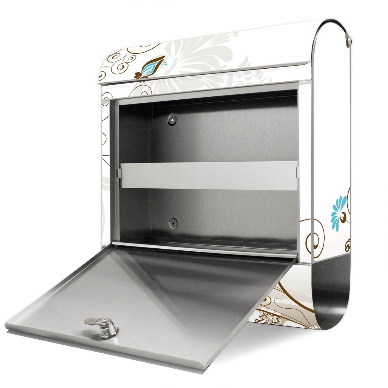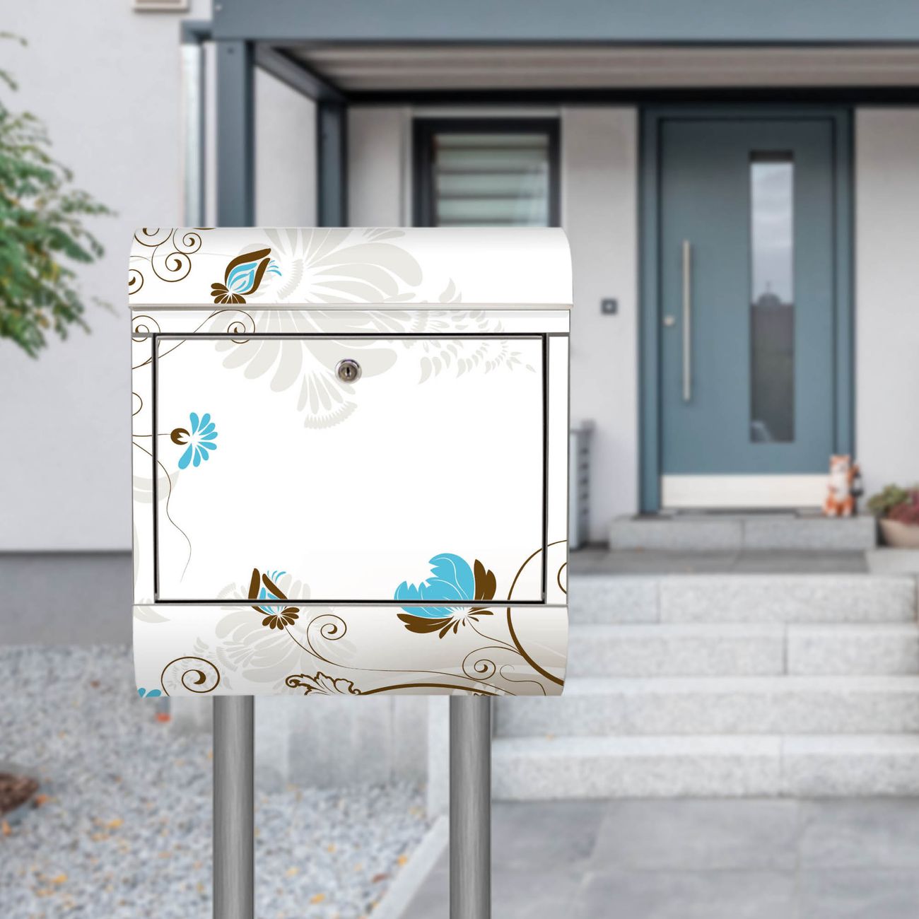 Der Motivstandbriefkasten hat ein sehr ansprechendes und ausgefallenes Design, damit entlocken Sie Ihren Nachbarn und dem Postboten ein Lächeln. Heben Sie Sich ab von der tristen grauen Masse, ohne auf Funktionalität zu verzichten. Der Briefkasten besteht aus hochwertigem 18/0 Edelstahl und die Wetter- und UV-resistenten Folie mit Rankenrahmen Motiv ist zusätzlich mit einem Schutzlaminat überzogen. Der Standbriefkasten wird mit Montagematerial und zwei Schlüsseln geliefert.