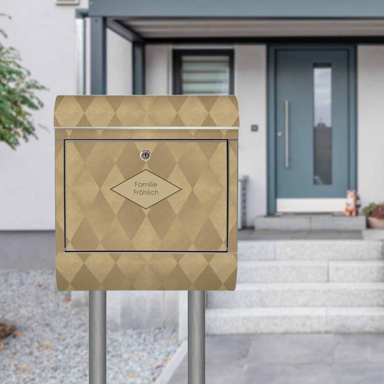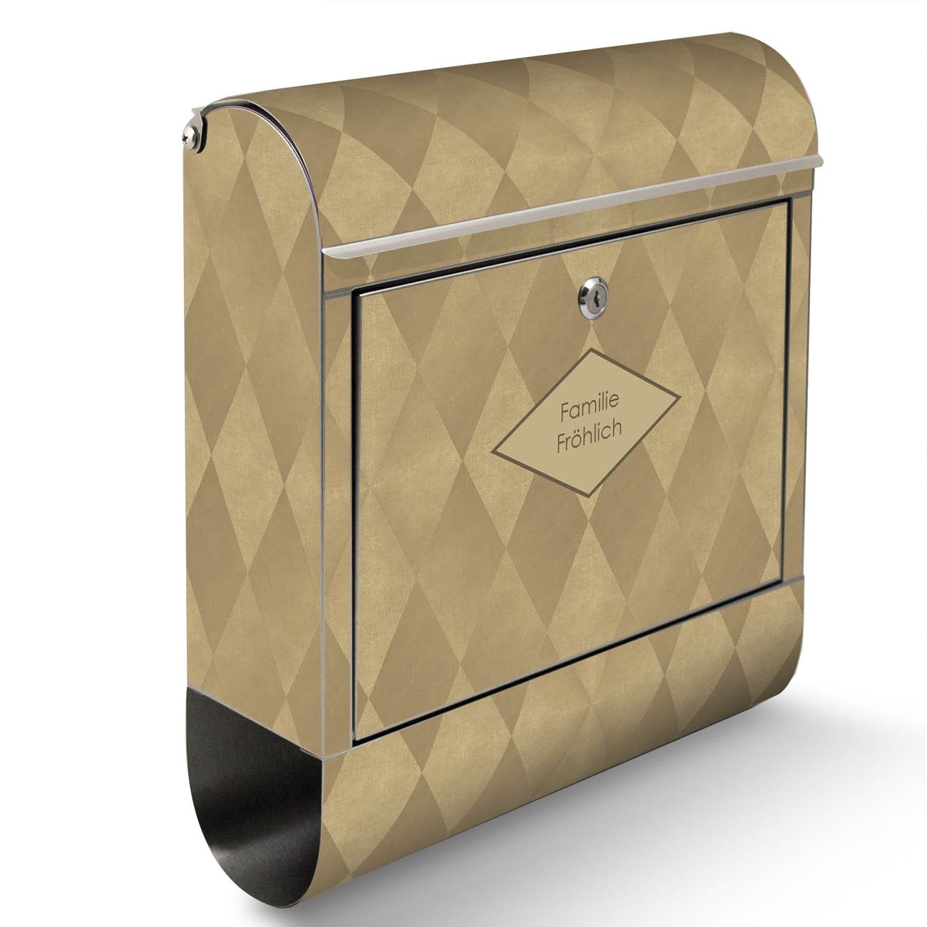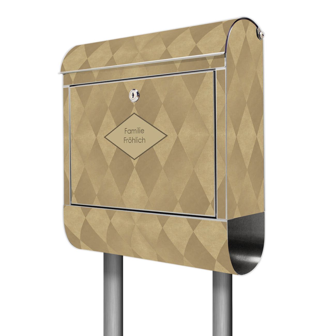 Der Motivstandbriefkasten hat ein sehr ansprechendes und ausgefallenes Design, damit entlocken Sie Ihren Nachbarn und dem Postboten ein Lächeln. Heben Sie Sich ab von der tristen grauen Masse, ohne auf Funktionalität zu verzichten. Der Briefkasten besteht aus hochwertigem 18/0 Edelstahl und die Wetter- und UV-resistenten Folie mit Rauten Metall Motiv ist zusätzlich mit einem Schutzlaminat überzogen. Der Standbriefkasten wird mit Montagematerial und zwei Schlüsseln geliefert.