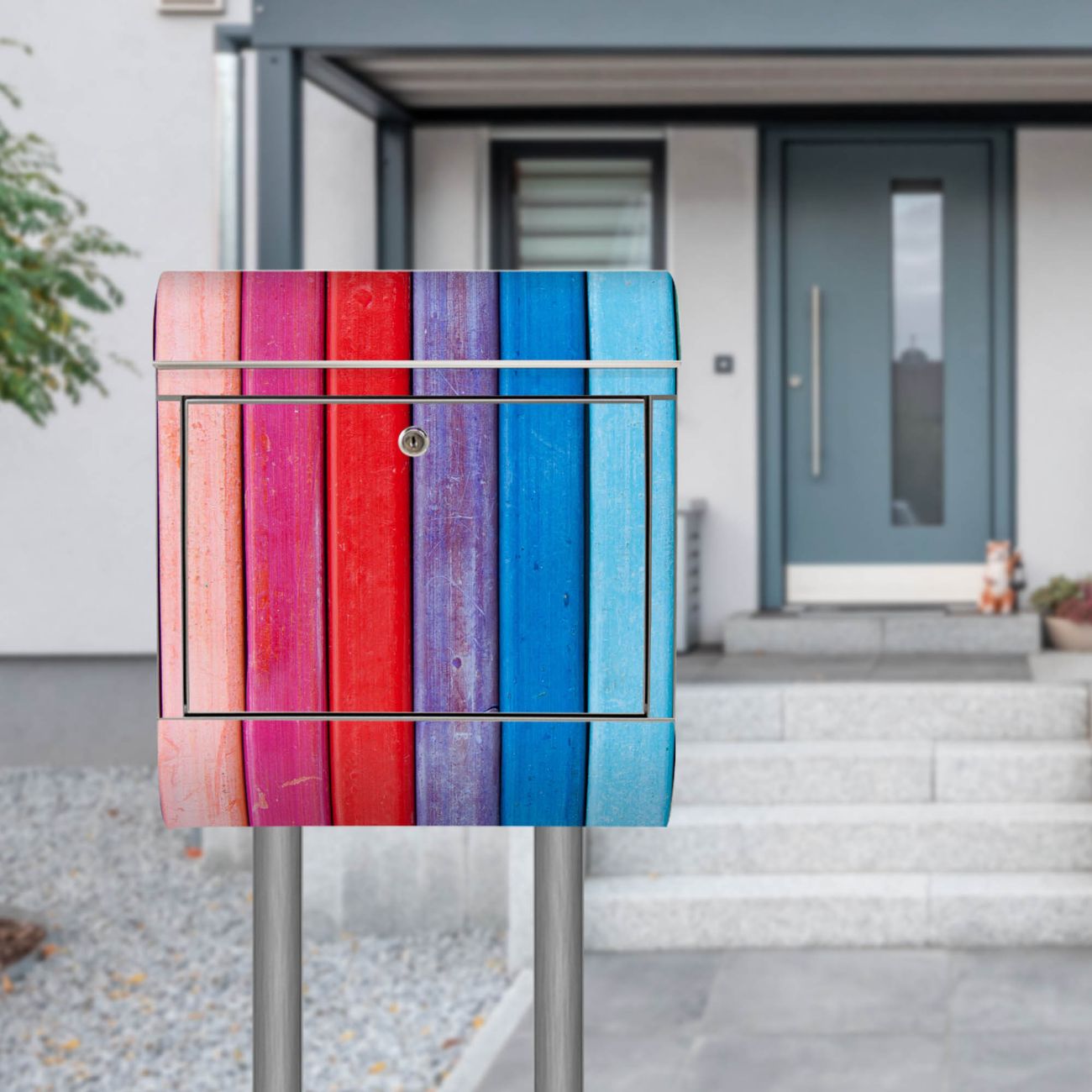 Standbriefkasten Edelstahl Regenbogenfarben