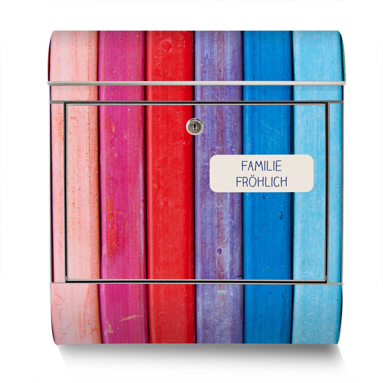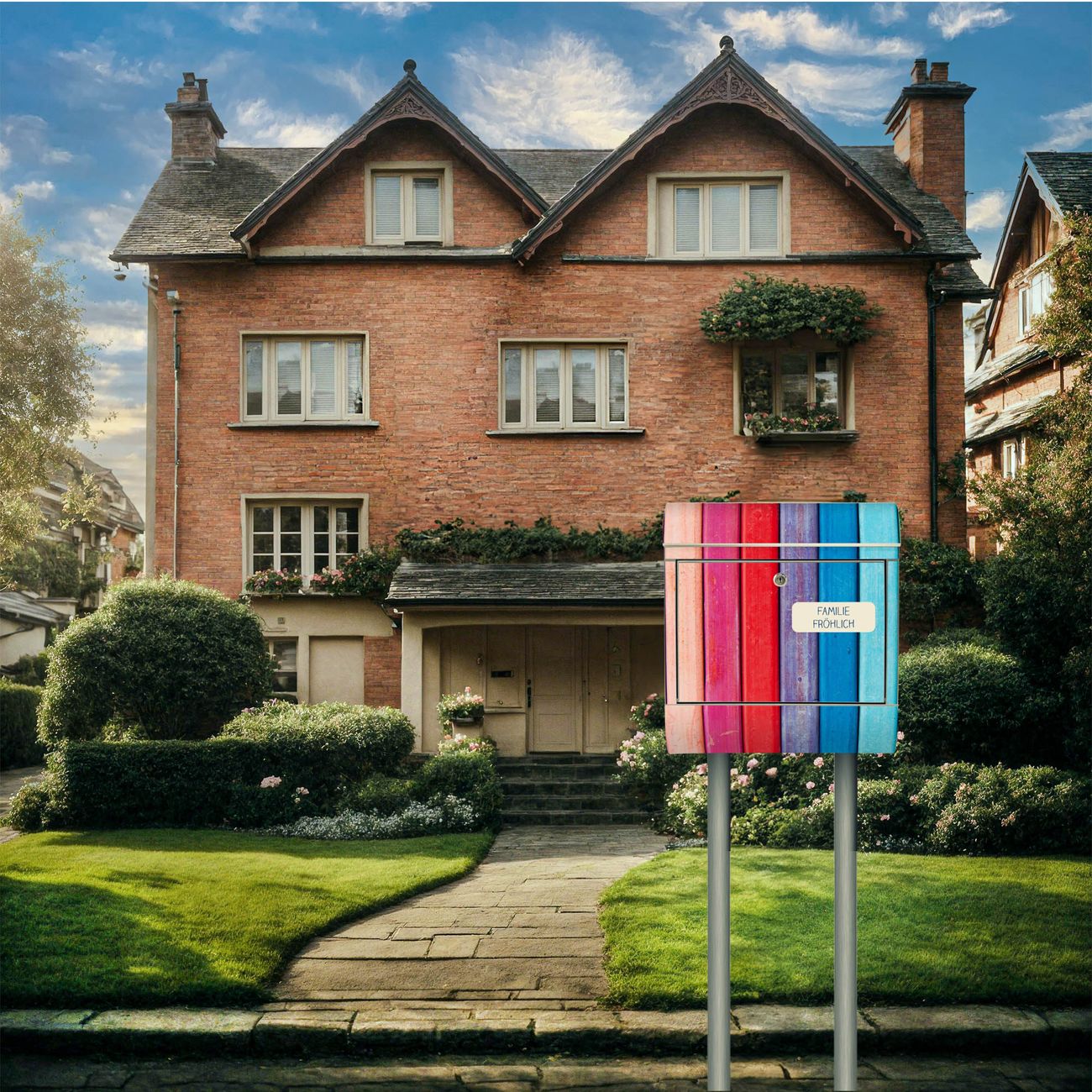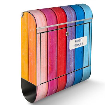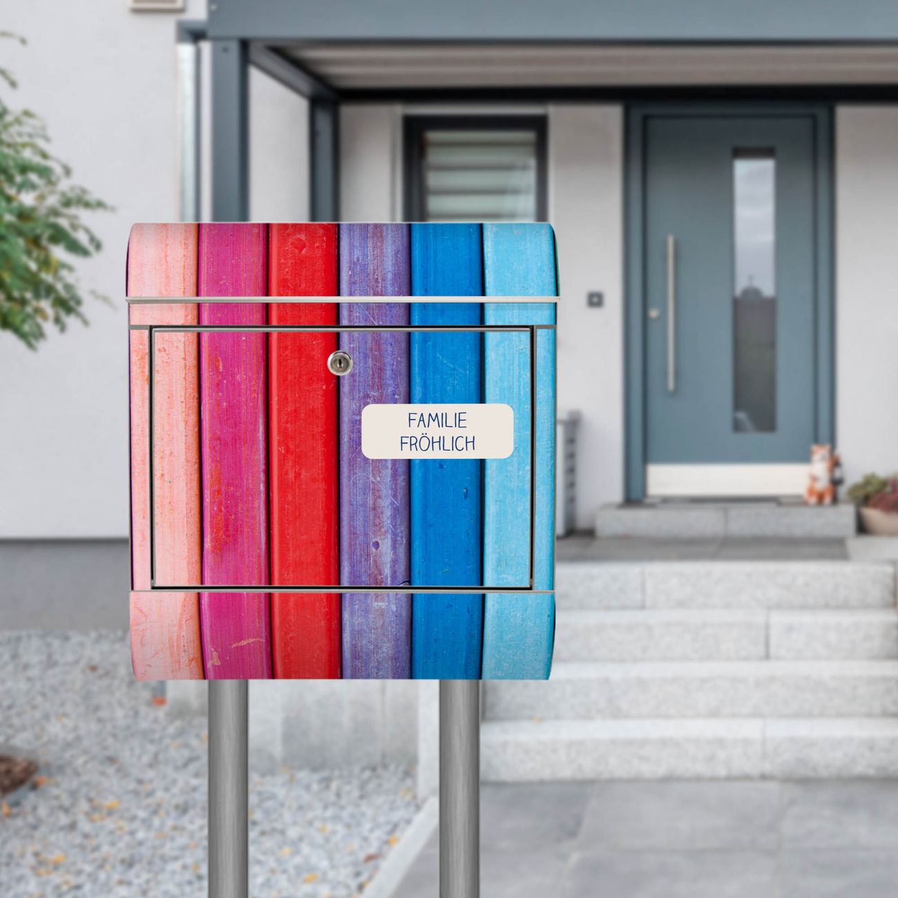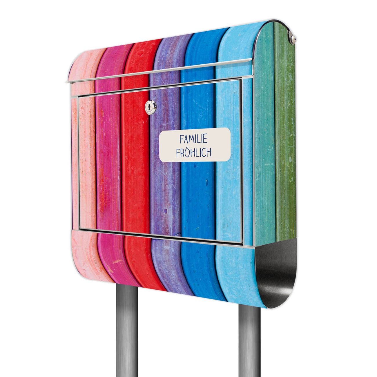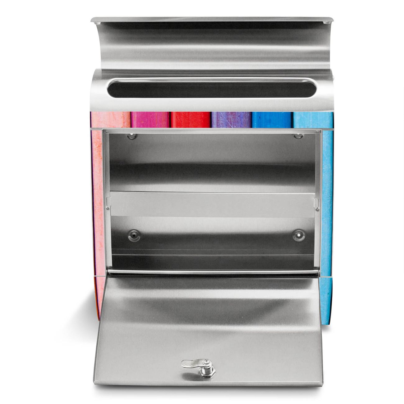 Der banjado Edelstahl Standbriefkasten mit Motiv Regenbogenfarben und eigenem Wunschtext bietet Ihnen mit seinem Fassungsvermögen genügend Platz auch für große A4 Sendungen. Das integrierte Zeitungsfach eignet sich hervorragend, um unkompliziert die Tageszeitung zu fassen.