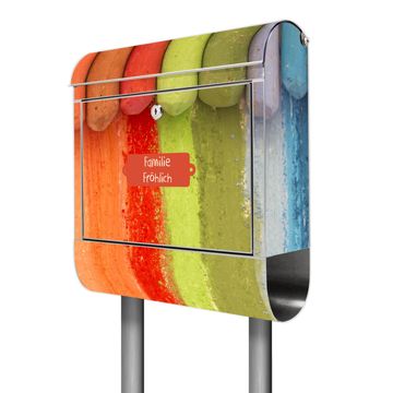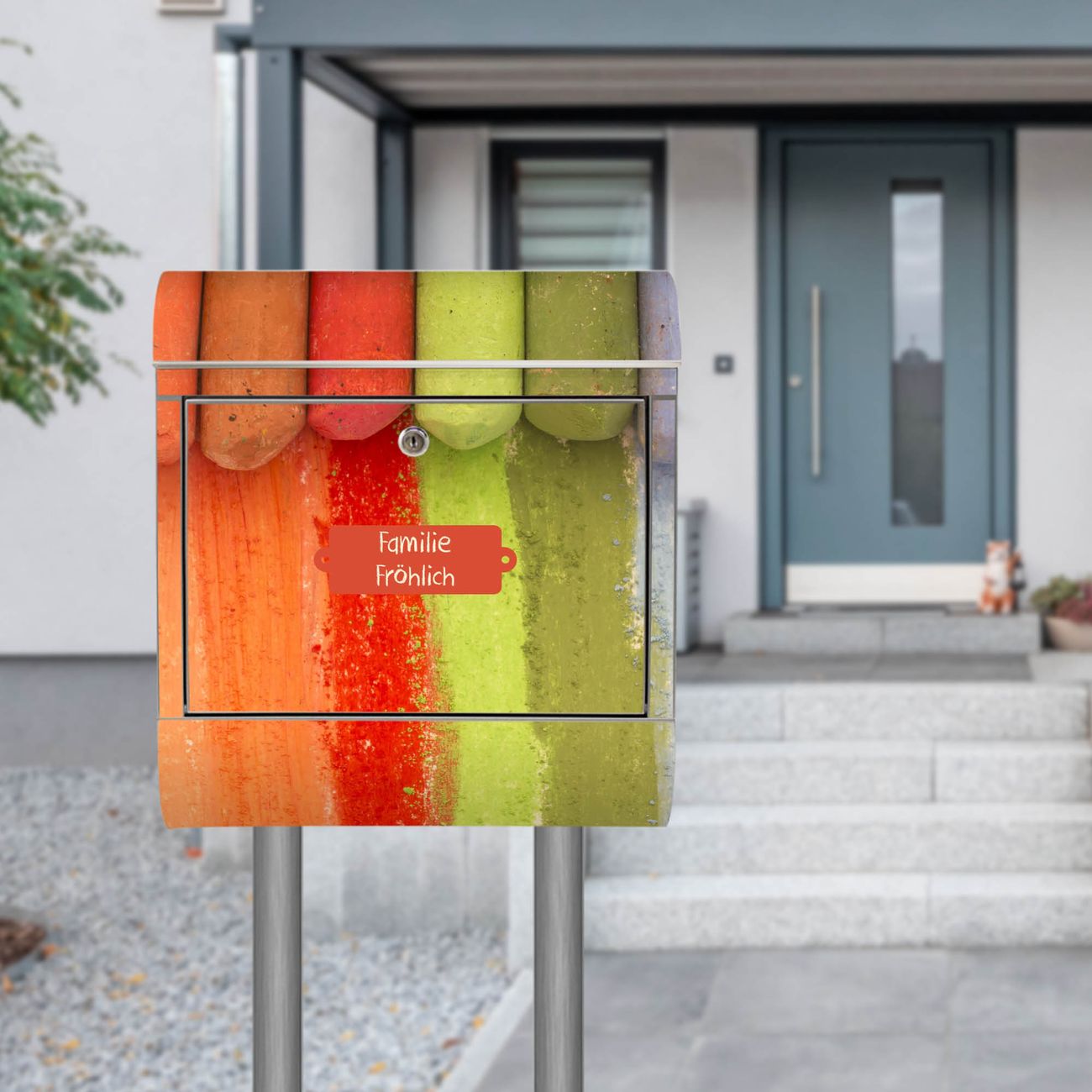 Der Motivstandbriefkasten hat ein sehr ansprechendes und ausgefallenes Design, damit entlocken Sie Ihren Nachbarn und dem Postboten ein Lächeln. Heben Sie Sich ab von der tristen grauen Masse, ohne auf Funktionalität zu verzichten. Der Briefkasten besteht aus hochwertigem 18/0 Edelstahl und die Wetter- und UV-resistenten Folie mit Regenbogenkreide Motiv ist zusätzlich mit einem Schutzlaminat überzogen. Der Standbriefkasten wird mit Montagematerial und zwei Schlüsseln geliefert.