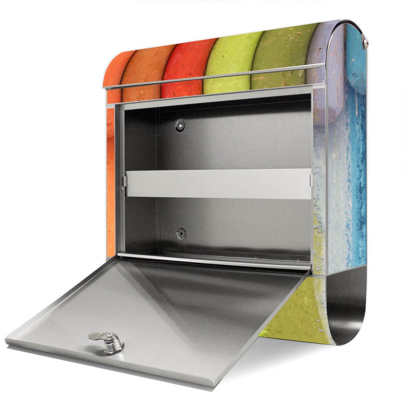 Der banjado Edelstahl Standbriefkasten mit Motiv Regenbogenkreide und eigenem Wunschtext bietet Ihnen mit seinem Fassungsvermögen genügend Platz auch für große A4 Sendungen. Das integrierte Zeitungsfach eignet sich hervorragend, um unkompliziert die Tageszeitung zu fassen.