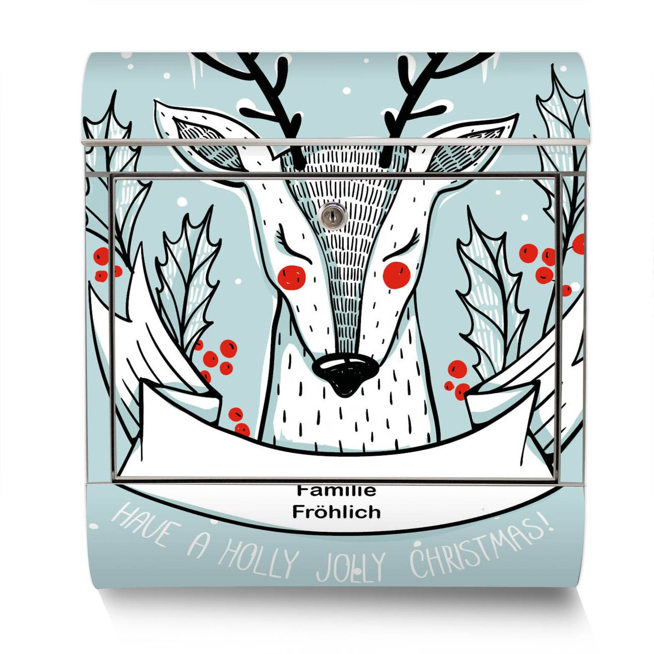 Der Motivstandbriefkasten hat ein sehr ansprechendes und ausgefallenes Design, damit entlocken Sie Ihren Nachbarn und dem Postboten ein Lächeln. Heben Sie Sich ab von der tristen grauen Masse, ohne auf Funktionalität zu verzichten. Der Briefkasten besteht aus hochwertigem 18/0 Edelstahl und die Wetter- und UV-resistenten Folie mit Rentier Motiv ist zusätzlich mit einem Schutzlaminat überzogen. Der Standbriefkasten wird mit Montagematerial und zwei Schlüsseln geliefert.