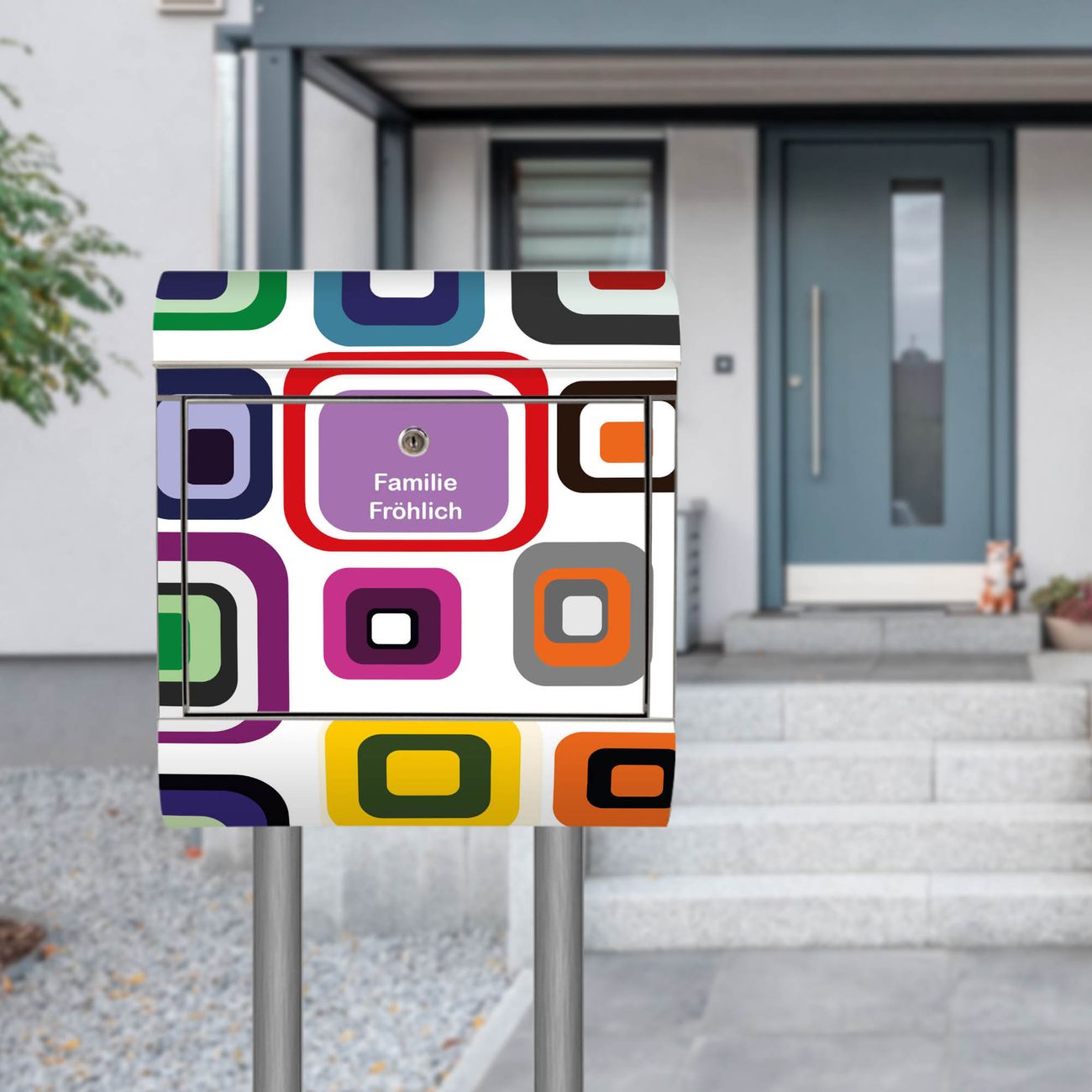 Der Motivstandbriefkasten hat ein sehr ansprechendes und ausgefallenes Design, damit entlocken Sie Ihren Nachbarn und dem Postboten ein Lächeln. Heben Sie Sich ab von der tristen grauen Masse, ohne auf Funktionalität zu verzichten. Der Briefkasten besteht aus hochwertigem 18/0 Edelstahl und die Wetter- und UV-resistenten Folie mit Retro 2 Motiv ist zusätzlich mit einem Schutzlaminat überzogen. Der Standbriefkasten wird mit Montagematerial und zwei Schlüsseln geliefert.