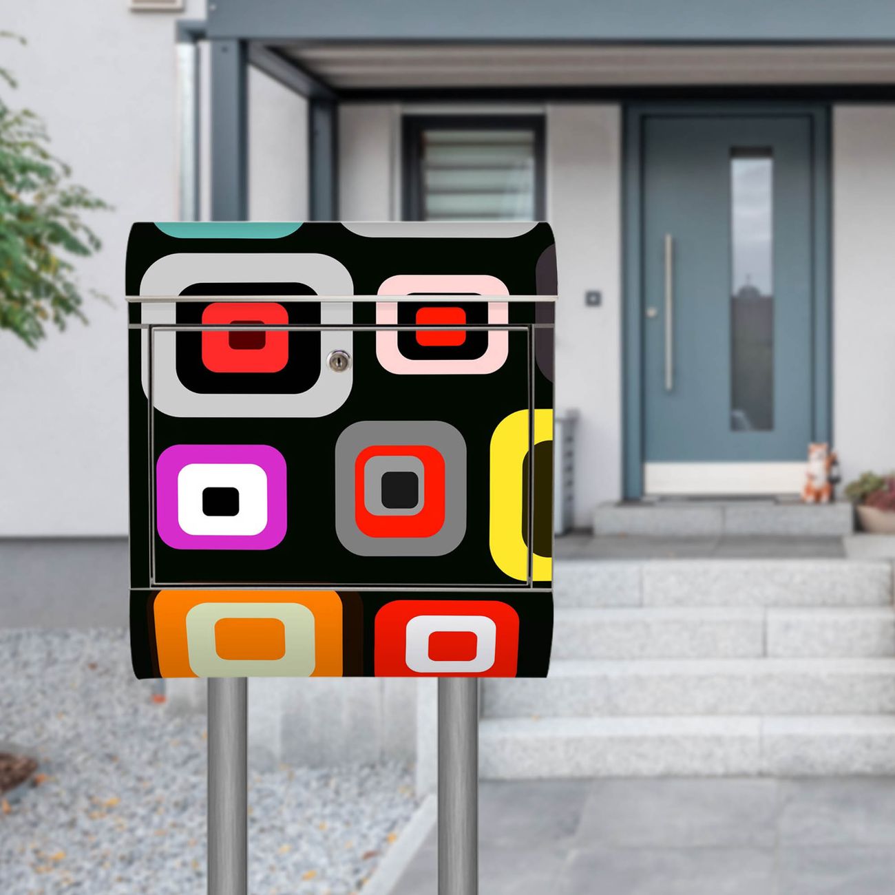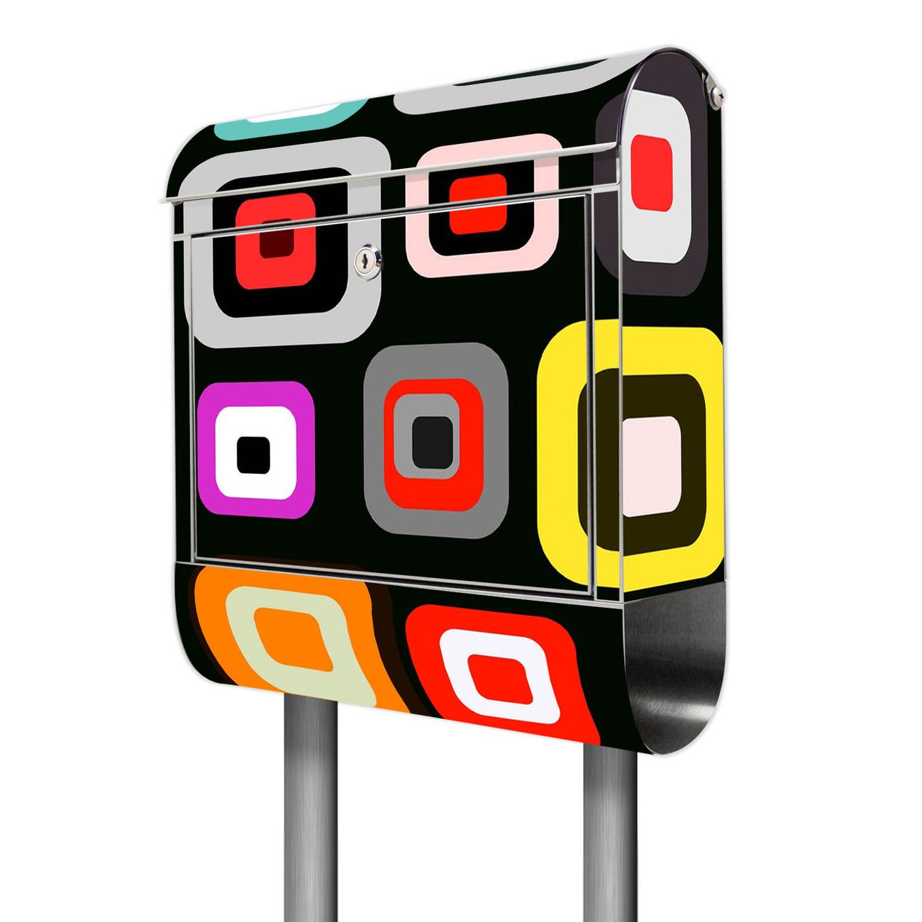 Der Motivstandbriefkasten hat ein sehr ansprechendes und ausgefallenes Design, damit entlocken Sie Ihren Nachbarn und dem Postboten ein Lächeln. Heben Sie Sich ab von der tristen grauen Masse, ohne auf Funktionalität zu verzichten. Der Briefkasten besteht aus hochwertigem 18/0 Edelstahl und die Wetter- und UV-resistenten Folie mit Retro Motiv ist zusätzlich mit einem Schutzlaminat überzogen. Der Standbriefkasten wird mit Montagematerial und zwei Schlüsseln geliefert.