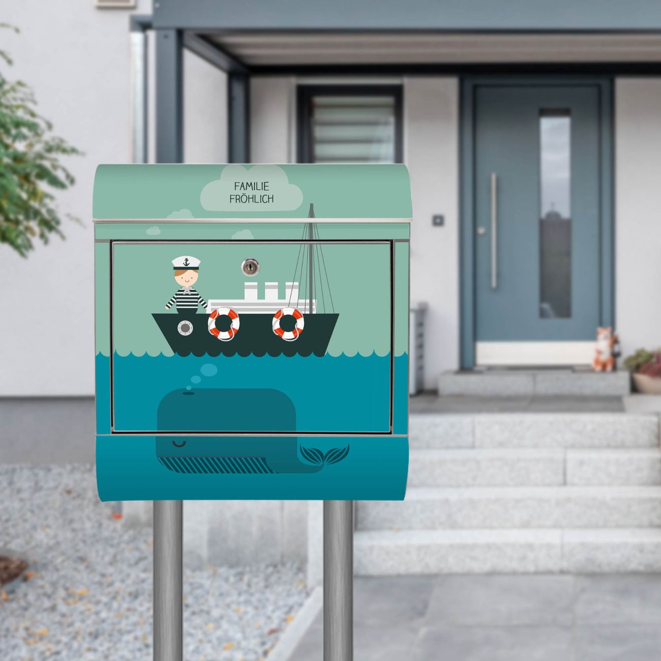 Der banjado Edelstahl Standbriefkasten mit Motiv Rettet die Wale und eigenem Wunschtext bietet Ihnen mit seinem Fassungsvermögen genügend Platz auch für große A4 Sendungen. Das integrierte Zeitungsfach eignet sich hervorragend, um unkompliziert die Tageszeitung zu fassen.