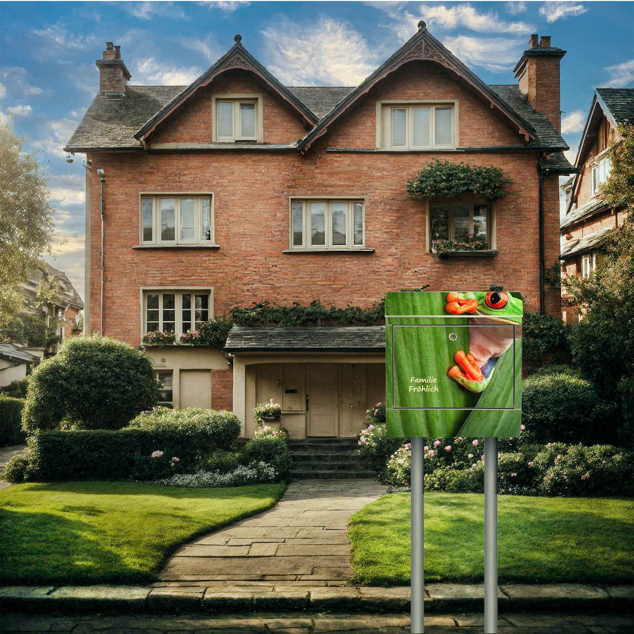 Wir empfehlen Ihnen, den Standbriefkasten einzubetonieren, um einen optimalen Stand zu gewährleisten. Die Größe des Standbriefkastens bietet genügend Platz für Sendungen aller Art, das hochwertige Edelstahl ist rostfrei und die Motivfolie absolut wetterfest.