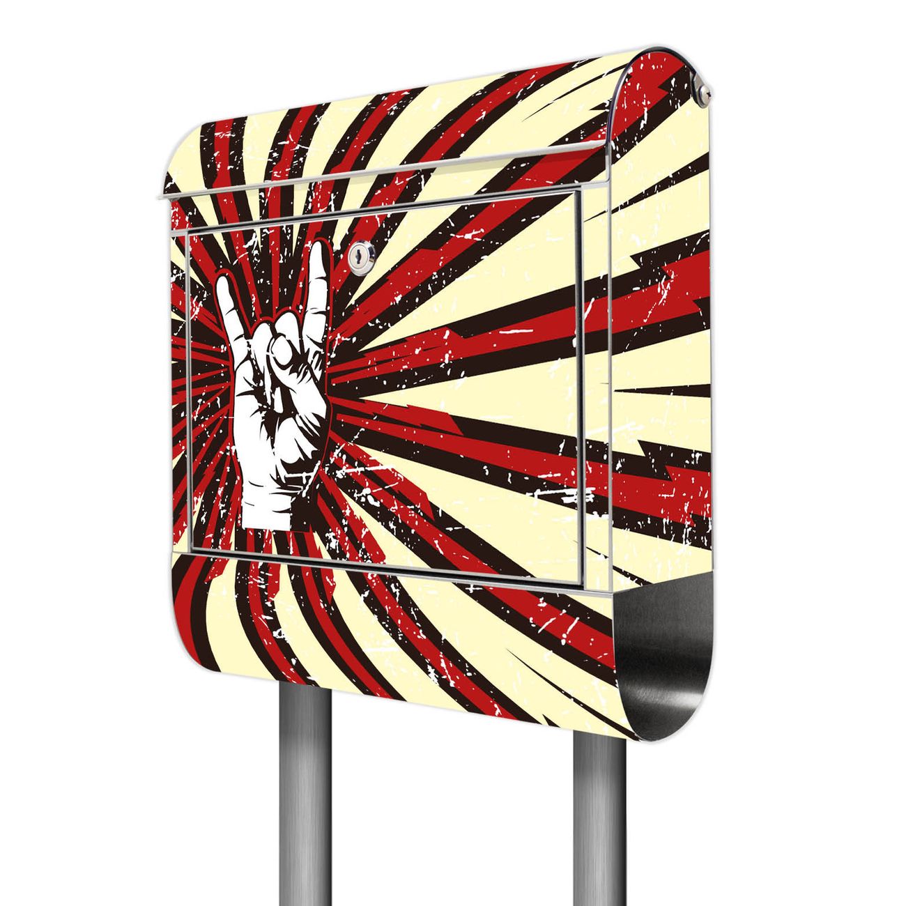 Der Motivstandbriefkasten hat ein sehr ansprechendes und ausgefallenes Design, damit entlocken Sie Ihren Nachbarn und dem Postboten ein Lächeln. Heben Sie Sich ab von der tristen grauen Masse, ohne auf Funktionalität zu verzichten. Der Briefkasten besteht aus hochwertigem 18/0 Edelstahl und die Wetter- und UV-resistenten Folie mit Rock On Motiv ist zusätzlich mit einem Schutzlaminat überzogen. Der Standbriefkasten wird mit Montagematerial und zwei Schlüsseln geliefert.