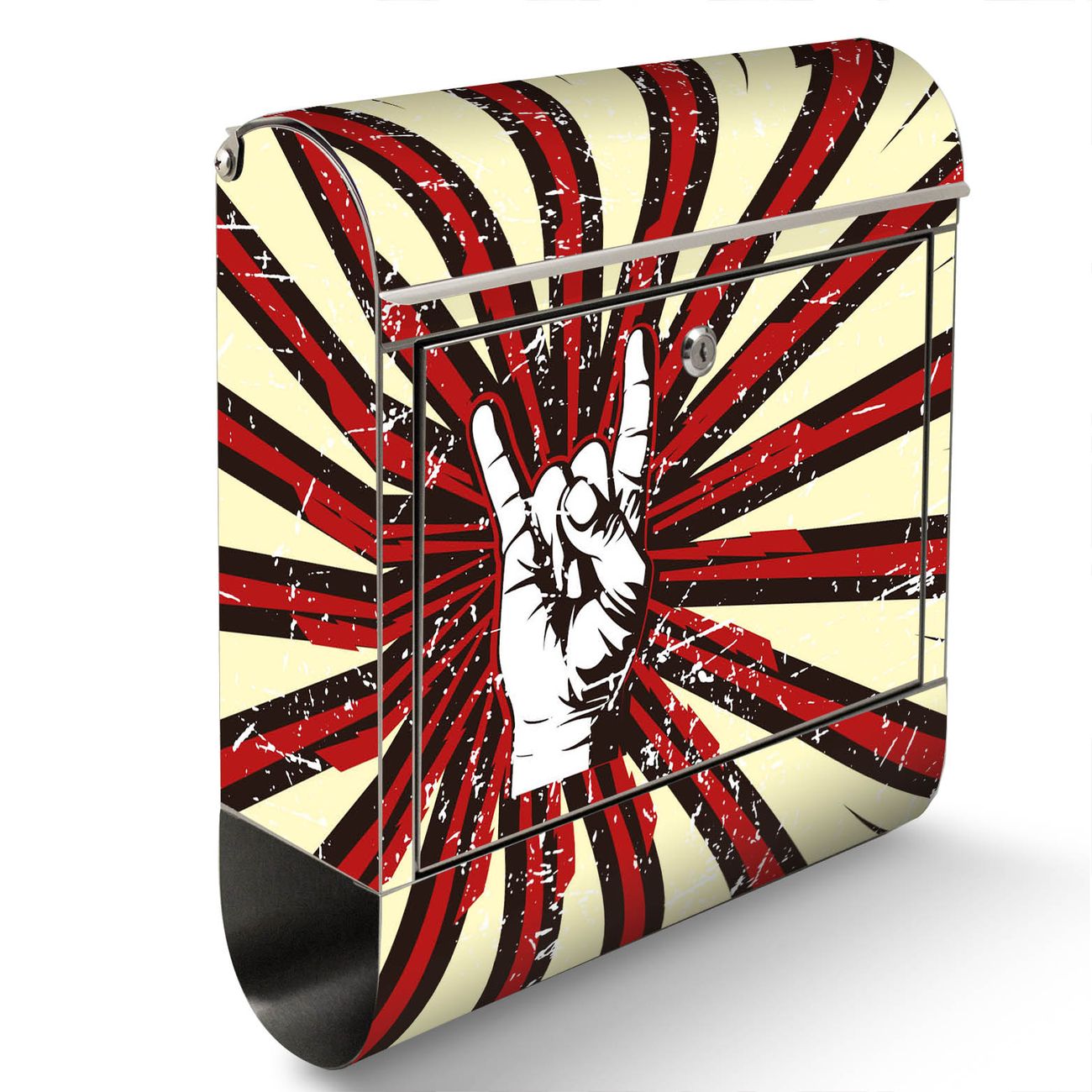 Der banjado Edelstahl Standbriefkasten mit Motiv Rock On bietet Ihnen mit seinem Fassungsvermögen genügend Platz auch für große A4 Sendungen. Das integrierte Zeitungsfach eignet sich hervorragend, um unkompliziert die Tageszeitung zu fassen.