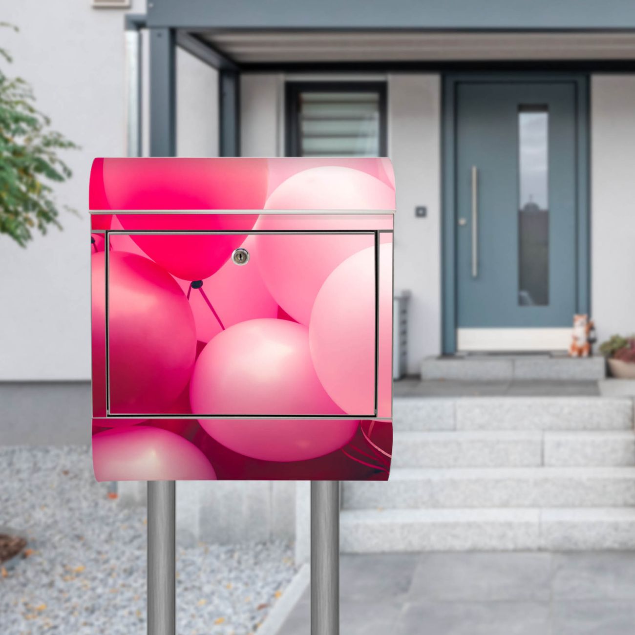 Standbriefkasten Edelstahl Rosa Ballons 2