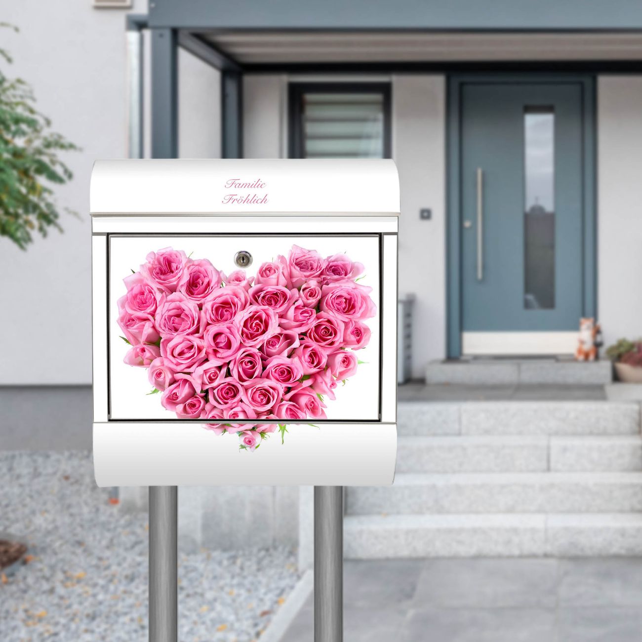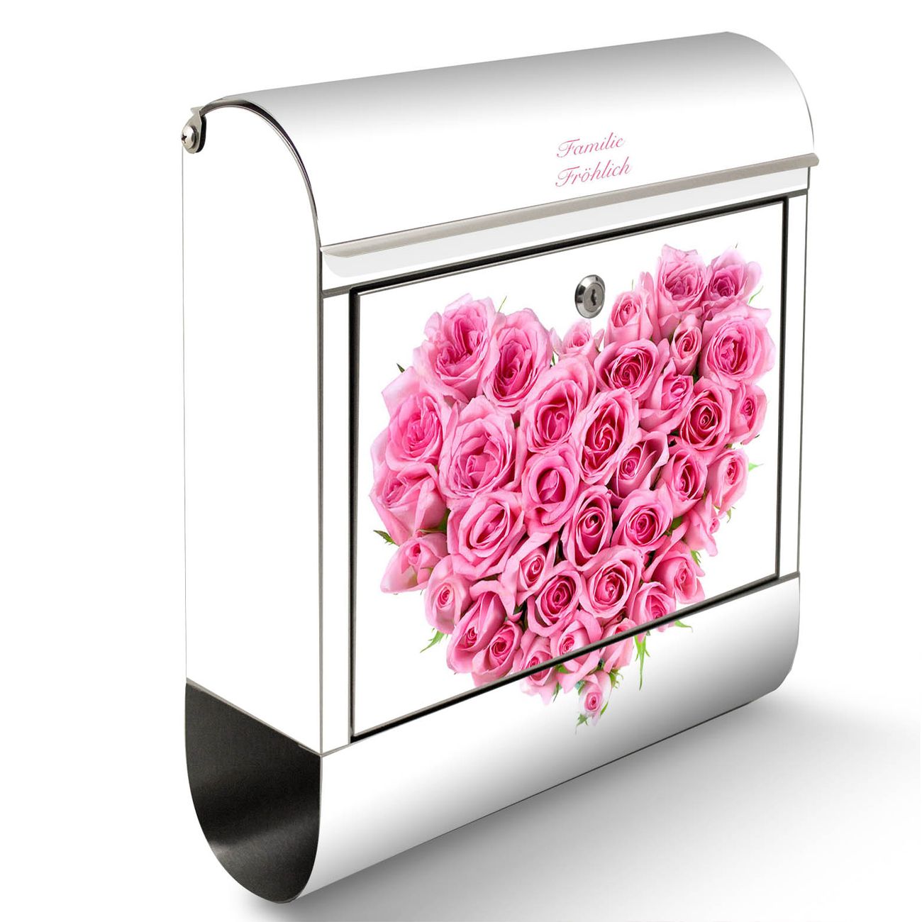 Der Motivstandbriefkasten hat ein sehr ansprechendes und ausgefallenes Design, damit entlocken Sie Ihren Nachbarn und dem Postboten ein Lächeln. Heben Sie Sich ab von der tristen grauen Masse, ohne auf Funktionalität zu verzichten. Der Briefkasten besteht aus hochwertigem 18/0 Edelstahl und die Wetter- und UV-resistenten Folie mit Rosenherz Motiv ist zusätzlich mit einem Schutzlaminat überzogen. Der Standbriefkasten wird mit Montagematerial und zwei Schlüsseln geliefert.