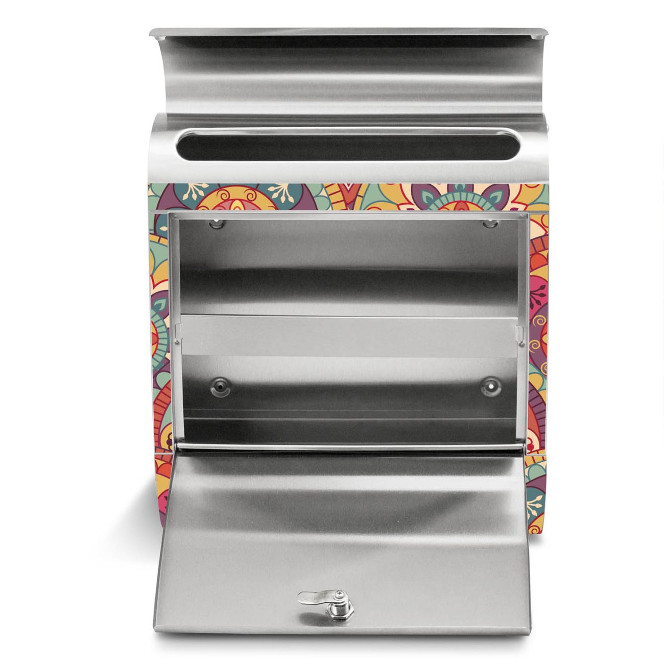Der Motivstandbriefkasten hat ein sehr ansprechendes und ausgefallenes Design, damit entlocken Sie Ihren Nachbarn und dem Postboten ein Lächeln. Heben Sie Sich ab von der tristen grauen Masse, ohne auf Funktionalität zu verzichten. Der Briefkasten besteht aus hochwertigem 18/0 Edelstahl und die Wetter- und UV-resistenten Folie mit Rosetten Motiv ist zusätzlich mit einem Schutzlaminat überzogen. Der Standbriefkasten wird mit Montagematerial und zwei Schlüsseln geliefert.