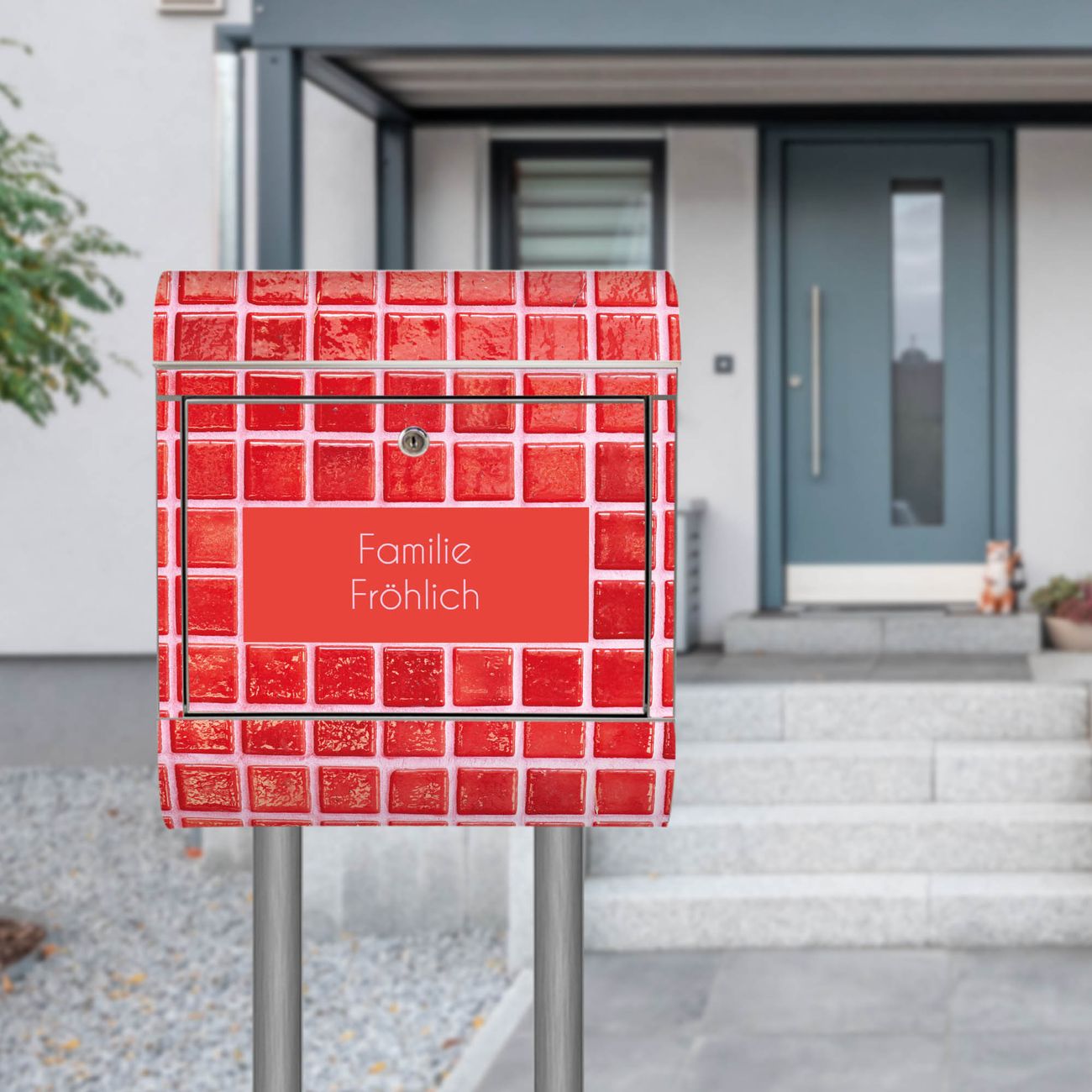 Standbriefkasten Edelstahl Rote Kacheln