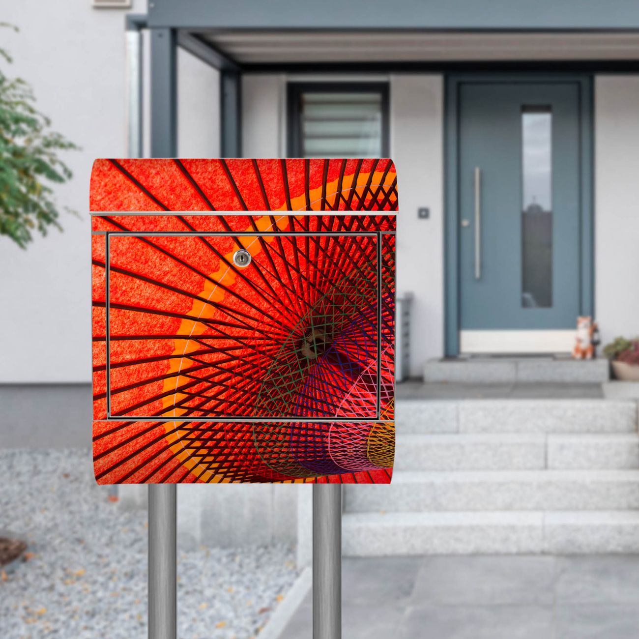 Standbriefkasten Edelstahl Roter Schirm