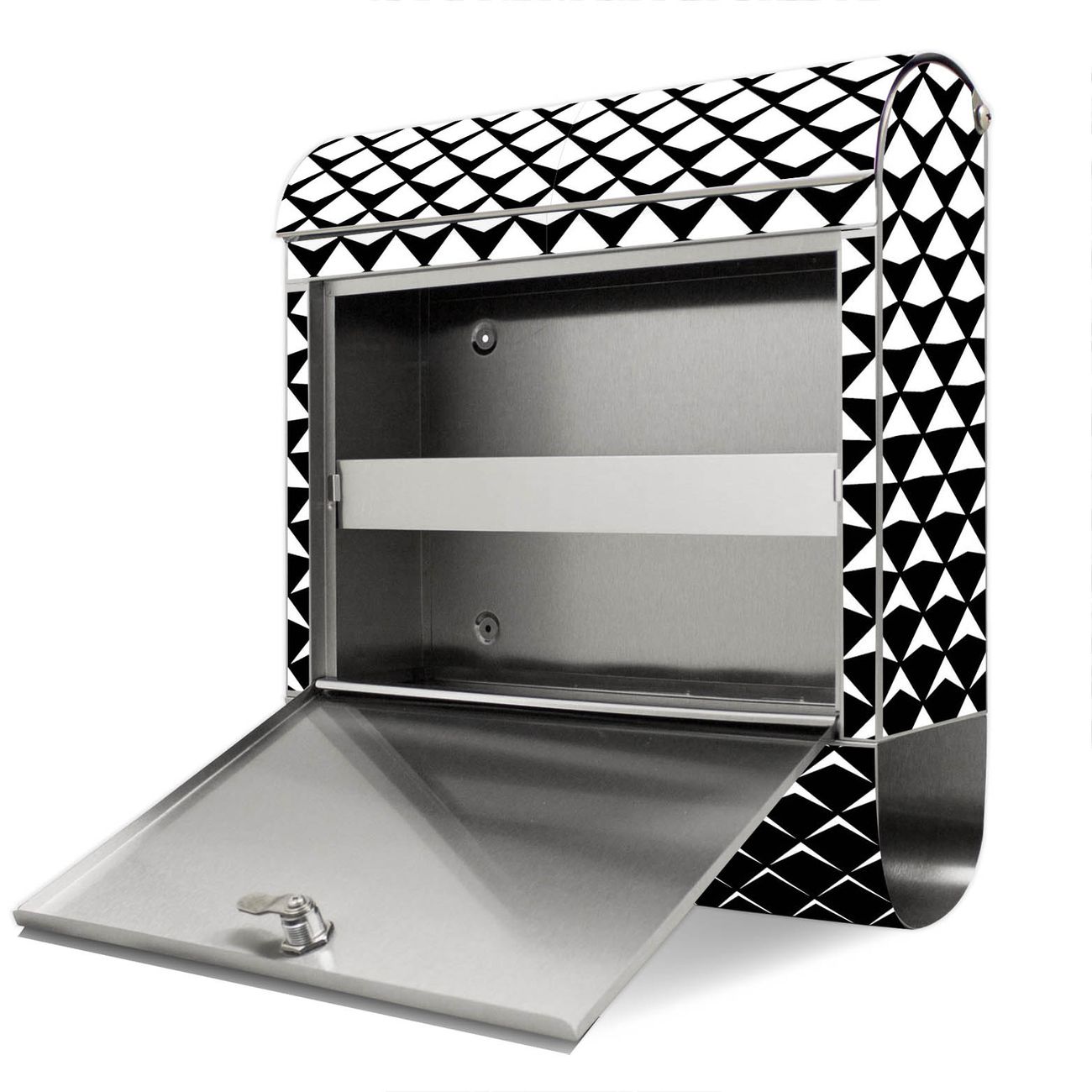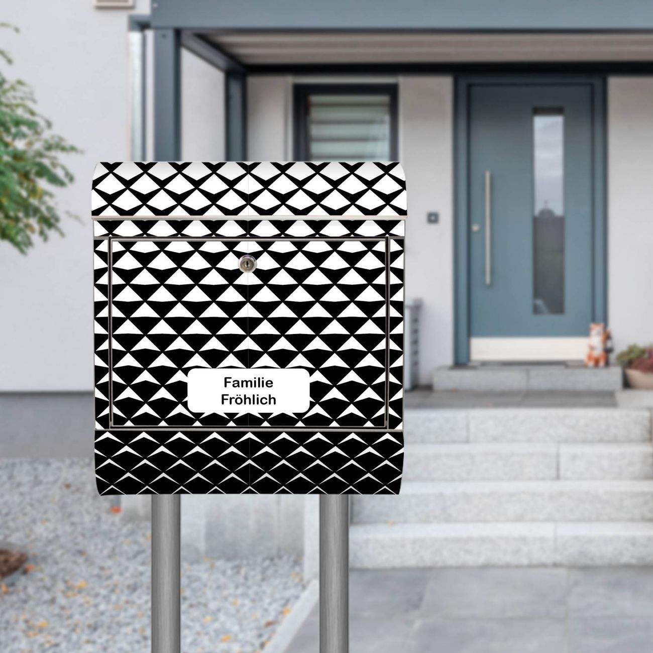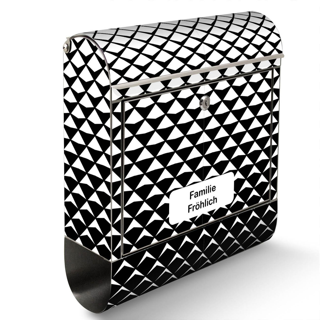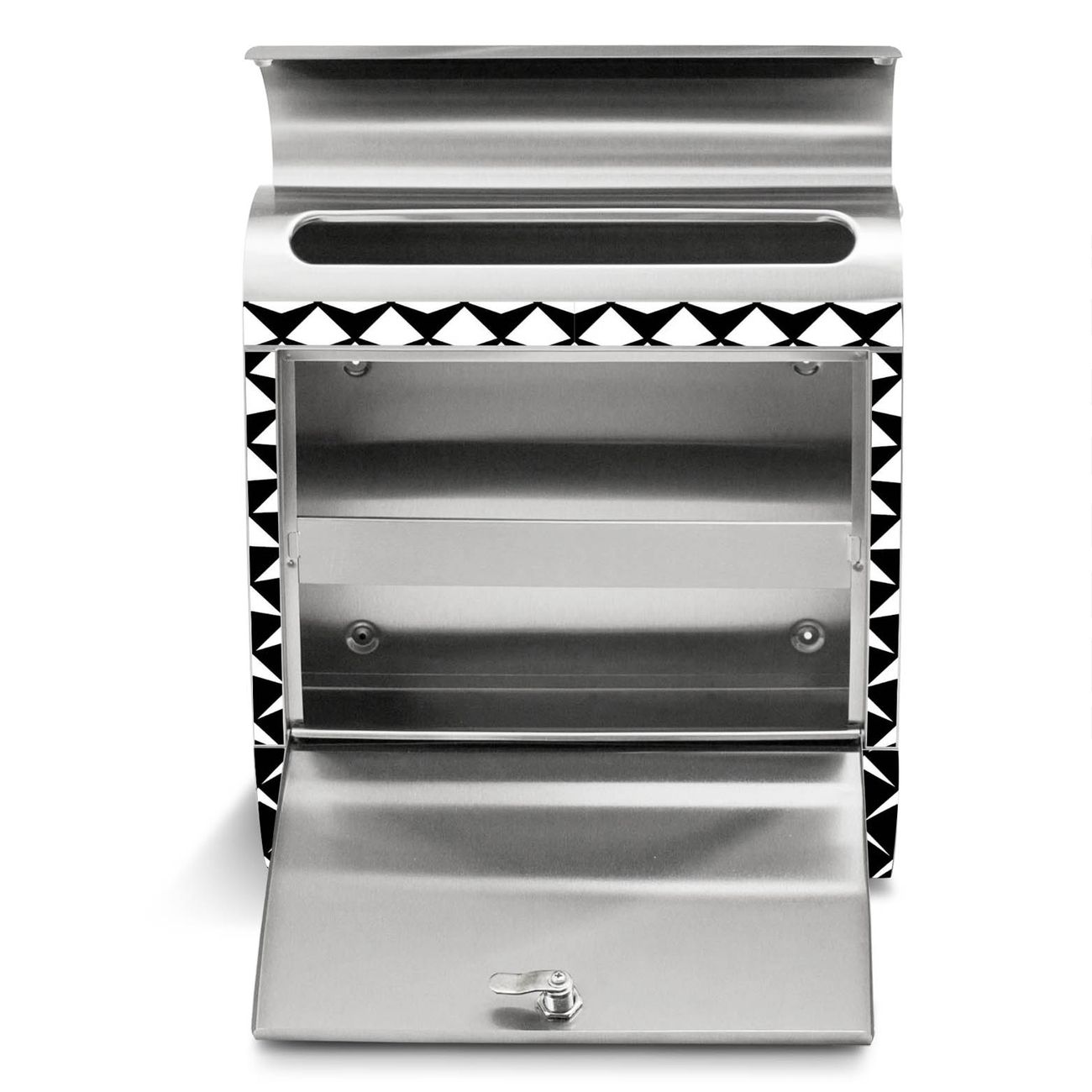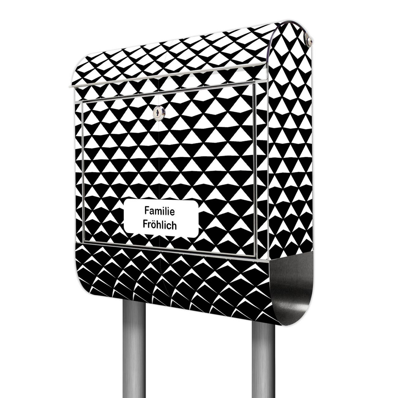 Der banjado Edelstahl Standbriefkasten mit Motiv Schattierung und eigenem Wunschtext bietet Ihnen mit seinem Fassungsvermögen genügend Platz auch für große A4 Sendungen. Das integrierte Zeitungsfach eignet sich hervorragend, um unkompliziert die Tageszeitung zu fassen.