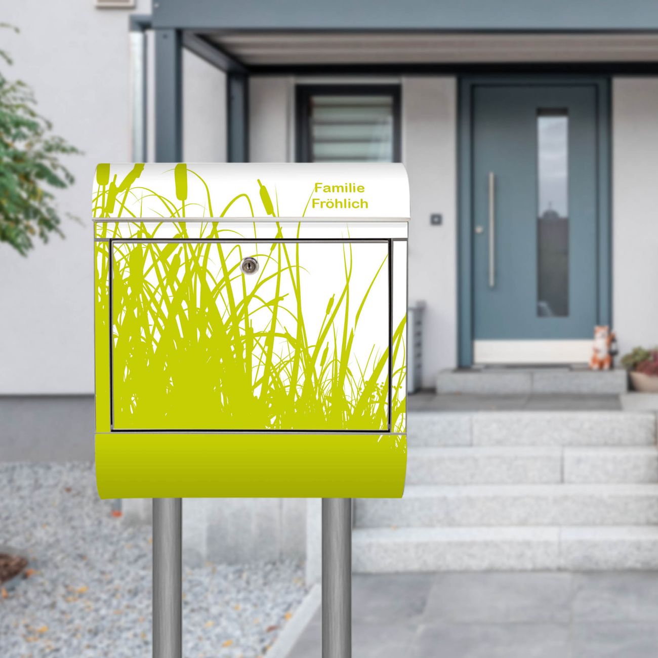 Der Motivstandbriefkasten hat ein sehr ansprechendes und ausgefallenes Design, damit entlocken Sie Ihren Nachbarn und dem Postboten ein Lächeln. Heben Sie Sich ab von der tristen grauen Masse, ohne auf Funktionalität zu verzichten. Der Briefkasten besteht aus hochwertigem 18/0 Edelstahl und die Wetter- und UV-resistenten Folie mit Schilf Motiv ist zusätzlich mit einem Schutzlaminat überzogen. Der Standbriefkasten wird mit Montagematerial und zwei Schlüsseln geliefert.