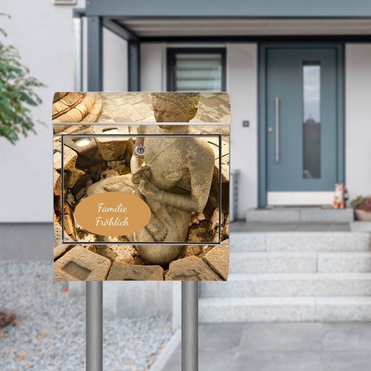 Standbriefkasten Edelstahl Sitzender Buddha