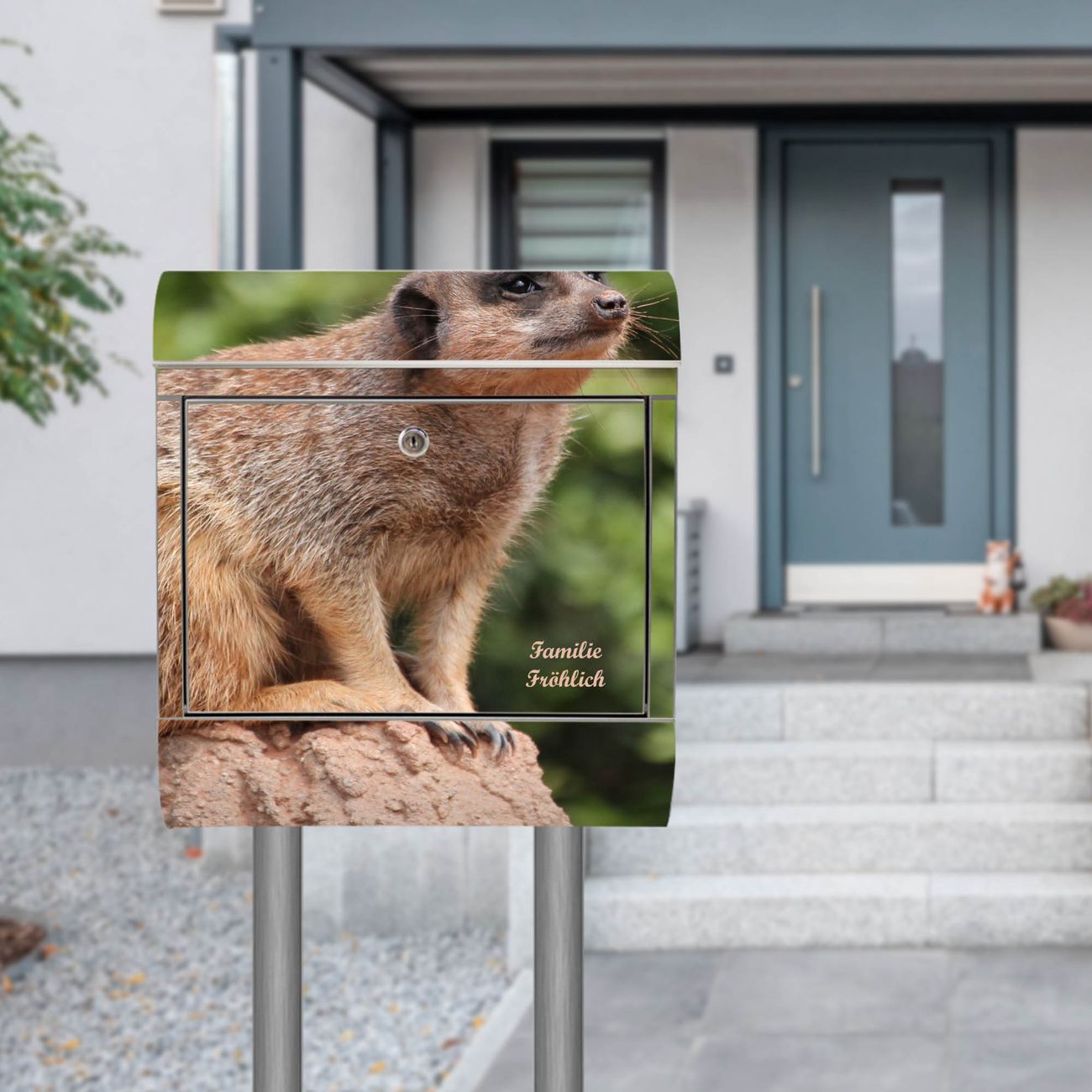 Standbriefkasten Edelstahl Sitzendes Erdmännchen