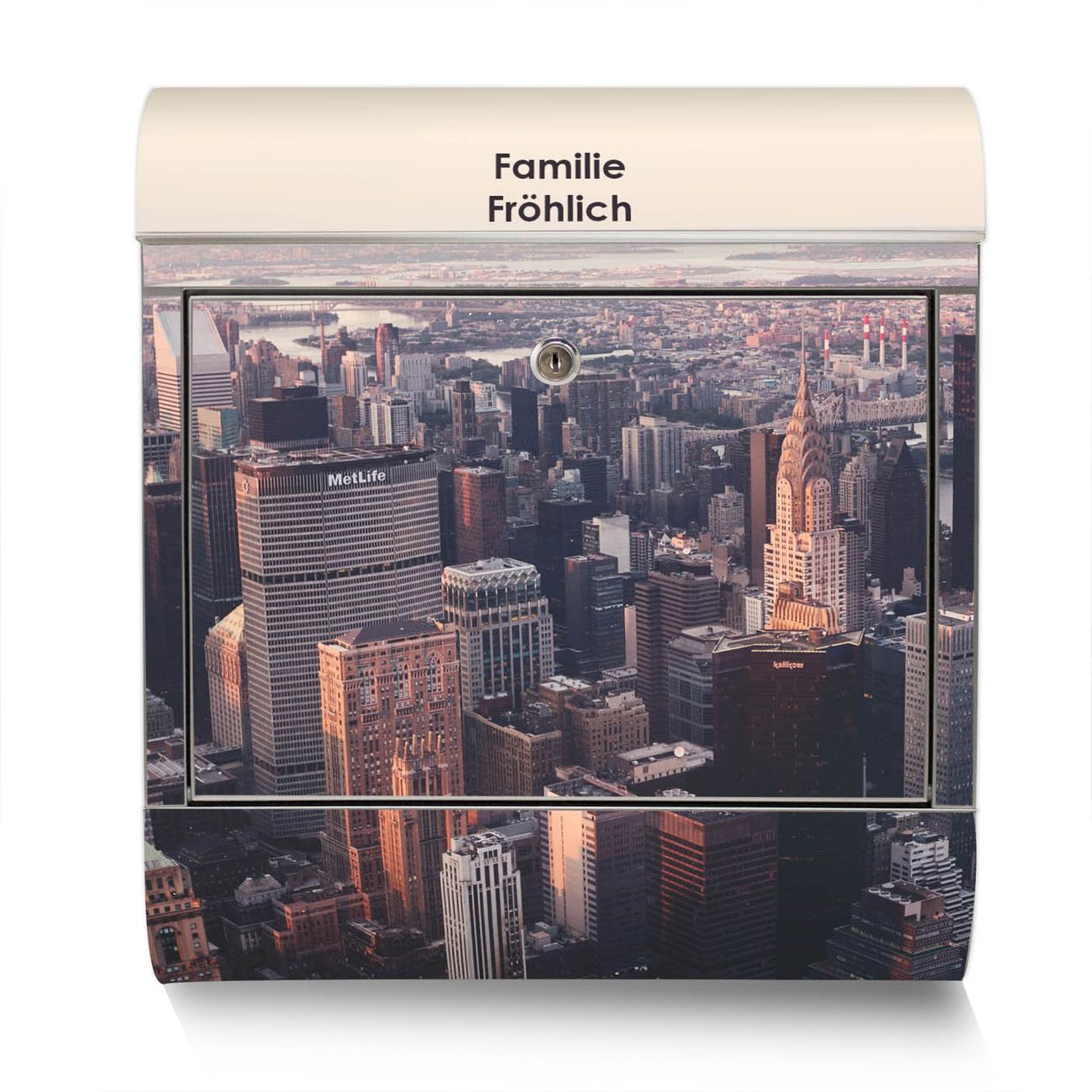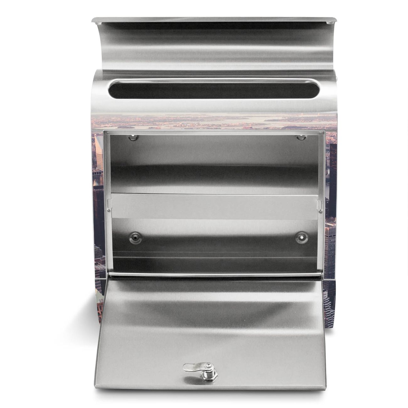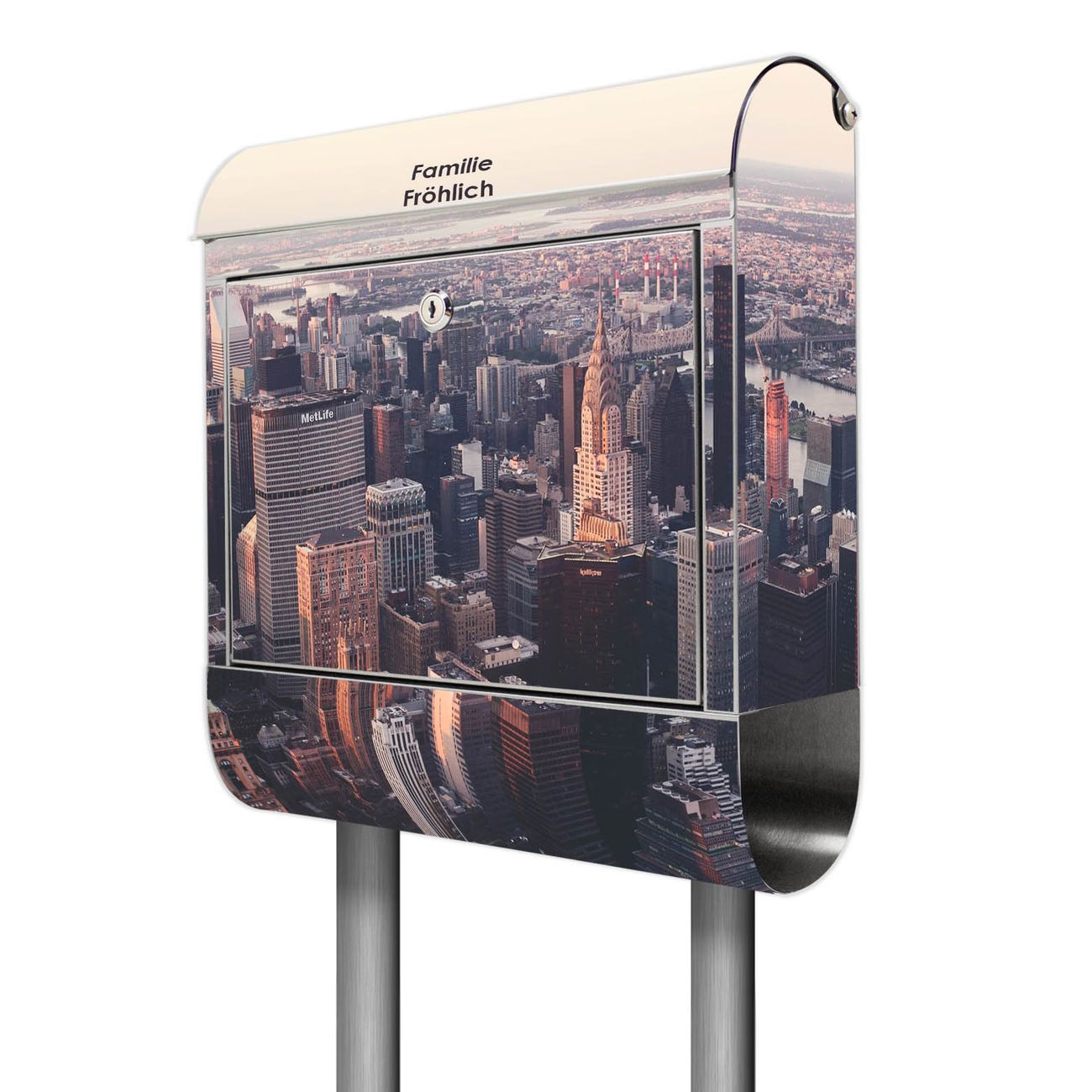 Der Motivstandbriefkasten hat ein sehr ansprechendes und ausgefallenes Design, damit entlocken Sie Ihren Nachbarn und dem Postboten ein Lächeln. Heben Sie Sich ab von der tristen grauen Masse, ohne auf Funktionalität zu verzichten. Der Briefkasten besteht aus hochwertigem 18/0 Edelstahl und die Wetter- und UV-resistenten Folie mit Skyline Motiv ist zusätzlich mit einem Schutzlaminat überzogen. Der Standbriefkasten wird mit Montagematerial und zwei Schlüsseln geliefert.