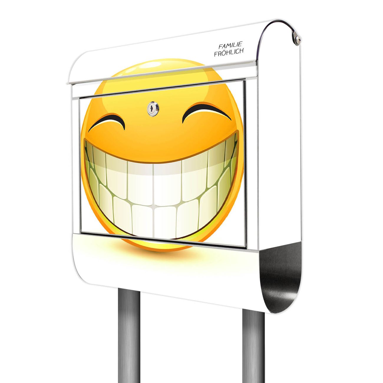 Der Motivstandbriefkasten hat ein sehr ansprechendes und ausgefallenes Design, damit entlocken Sie Ihren Nachbarn und dem Postboten ein Lächeln. Heben Sie Sich ab von der tristen grauen Masse, ohne auf Funktionalität zu verzichten. Der Briefkasten besteht aus hochwertigem 18/0 Edelstahl und die Wetter- und UV-resistenten Folie mit Smile Motiv ist zusätzlich mit einem Schutzlaminat überzogen. Der Standbriefkasten wird mit Montagematerial und zwei Schlüsseln geliefert.