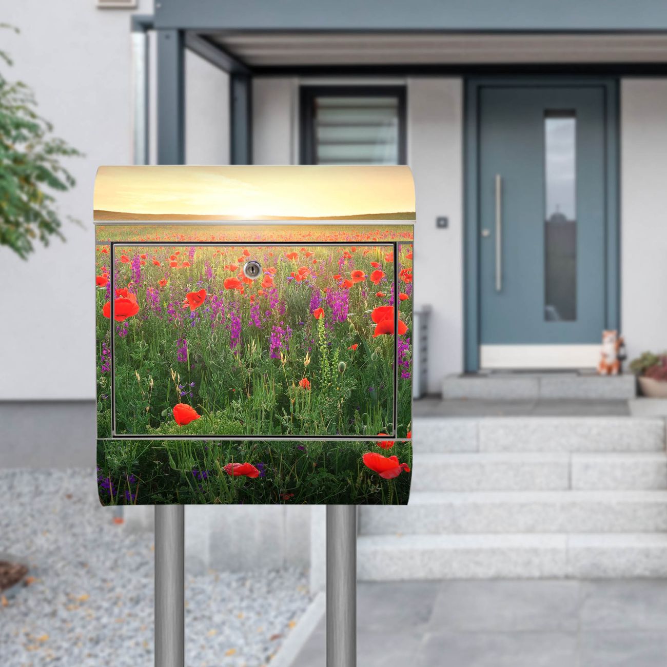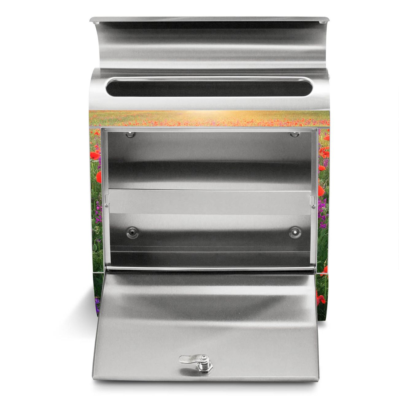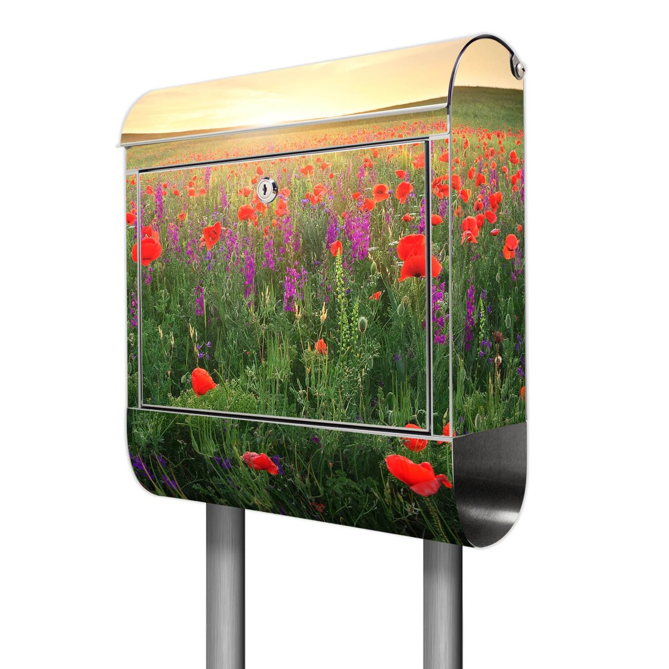 Der Motivstandbriefkasten hat ein sehr ansprechendes und ausgefallenes Design, damit entlocken Sie Ihren Nachbarn und dem Postboten ein Lächeln. Heben Sie Sich ab von der tristen grauen Masse, ohne auf Funktionalität zu verzichten. Der Briefkasten besteht aus hochwertigem 18/0 Edelstahl und die Wetter- und UV-resistenten Folie mit Sommerfeld Motiv ist zusätzlich mit einem Schutzlaminat überzogen. Der Standbriefkasten wird mit Montagematerial und zwei Schlüsseln geliefert.