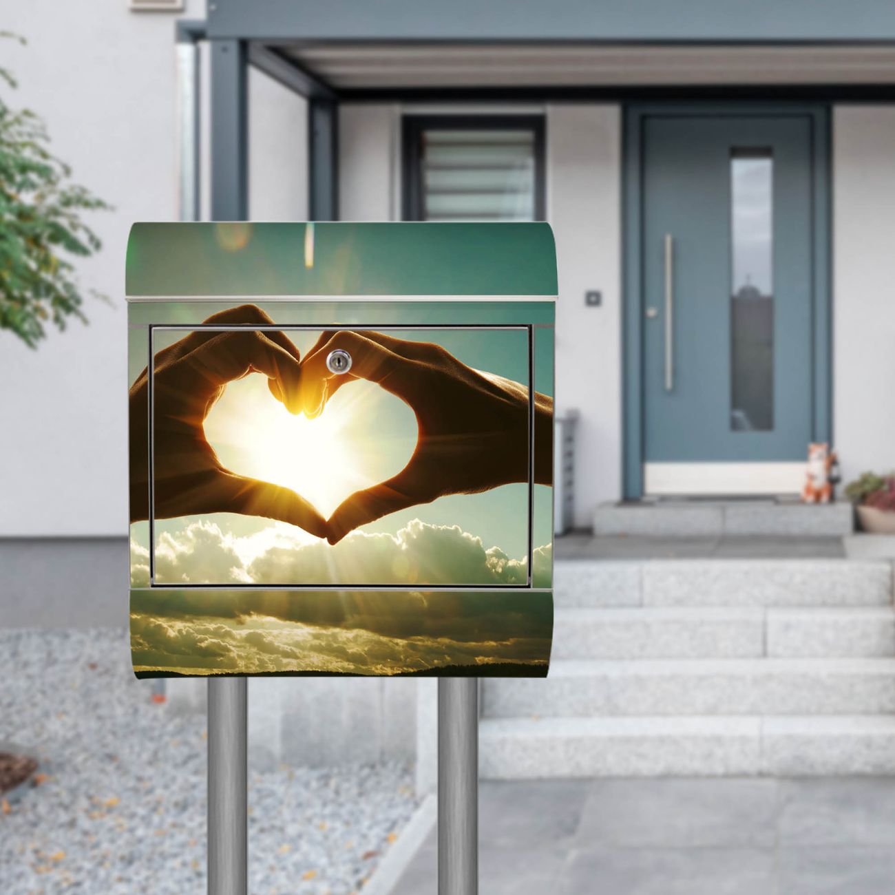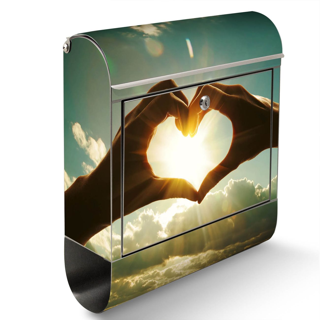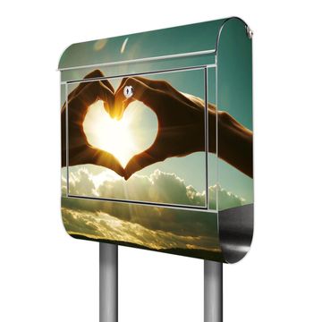Der Motivstandbriefkasten hat ein sehr ansprechendes und ausgefallenes Design, damit entlocken Sie Ihren Nachbarn und dem Postboten ein Lächeln. Heben Sie Sich ab von der tristen grauen Masse, ohne auf Funktionalität zu verzichten. Der Briefkasten besteht aus hochwertigem 18/0 Edelstahl und die Wetter- und UV-resistenten Folie mit Sonne im Herzen Motiv ist zusätzlich mit einem Schutzlaminat überzogen. Der Standbriefkasten wird mit Montagematerial und zwei Schlüsseln geliefert.