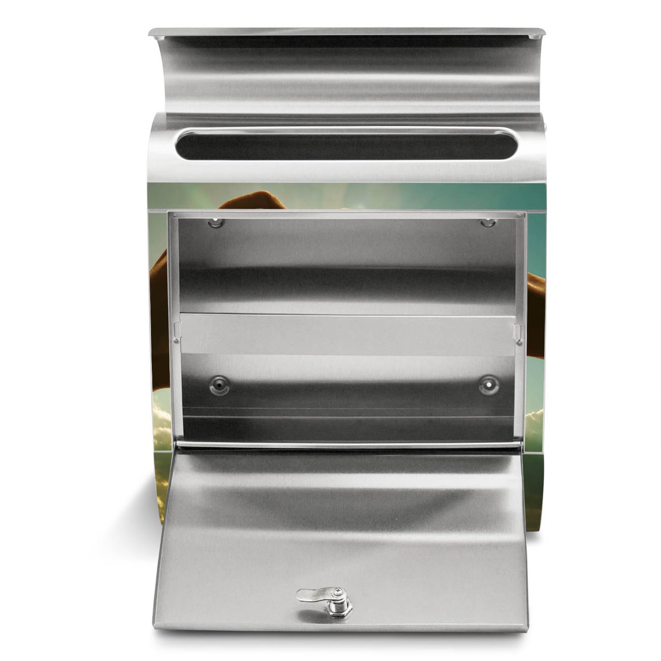 Wir empfehlen Ihnen, den Standbriefkasten einzubetonieren, um einen optimalen Stand zu gewährleisten. Die Größe des Standbriefkastens bietet genügend Platz für Sendungen aller Art, das hochwertige Edelstahl ist rostfrei und die Motivfolie absolut wetterfest.