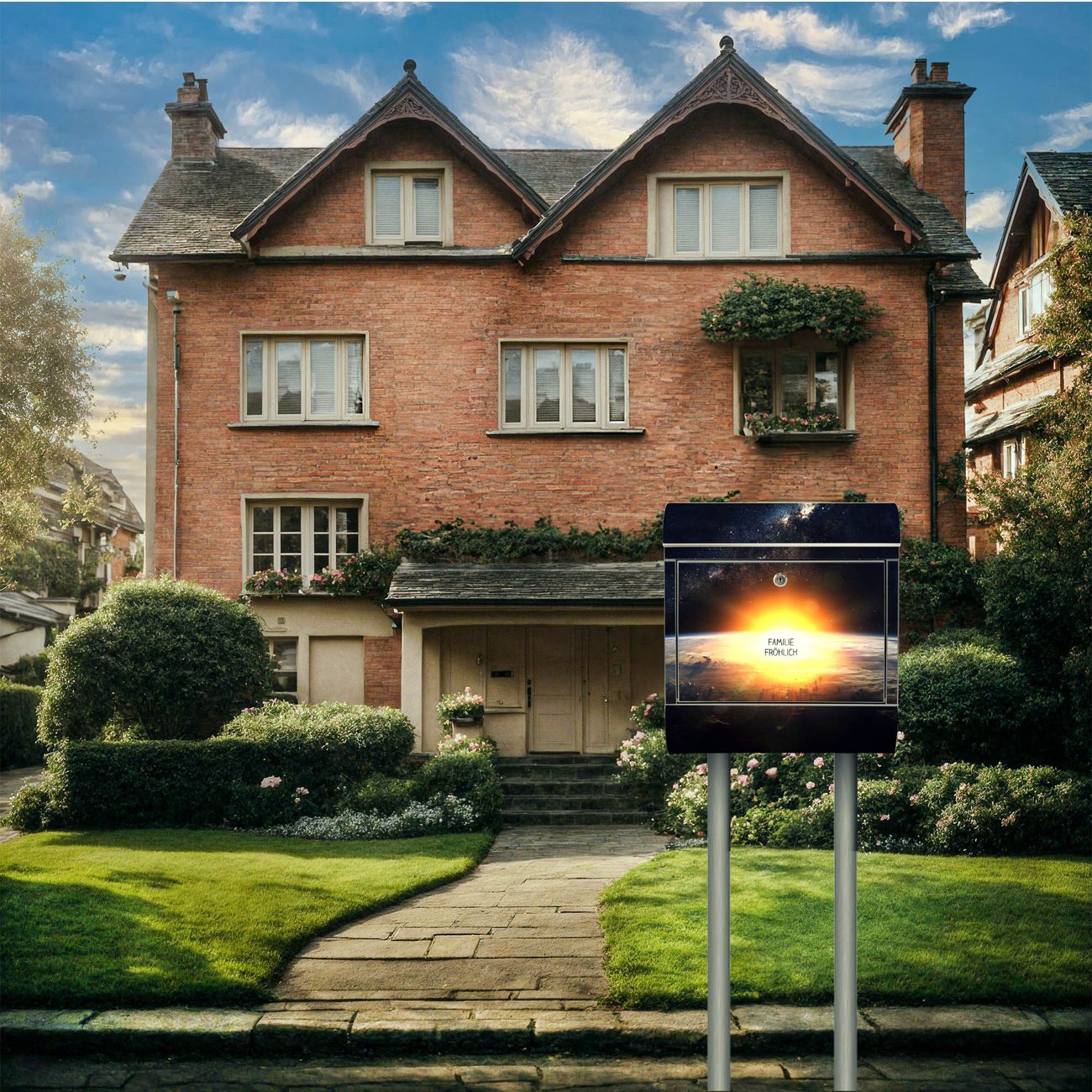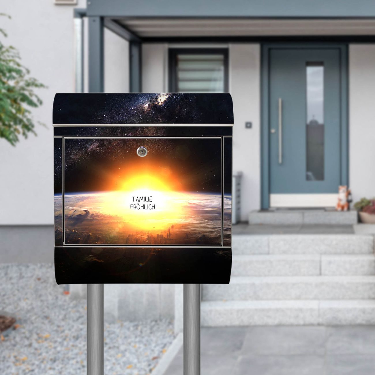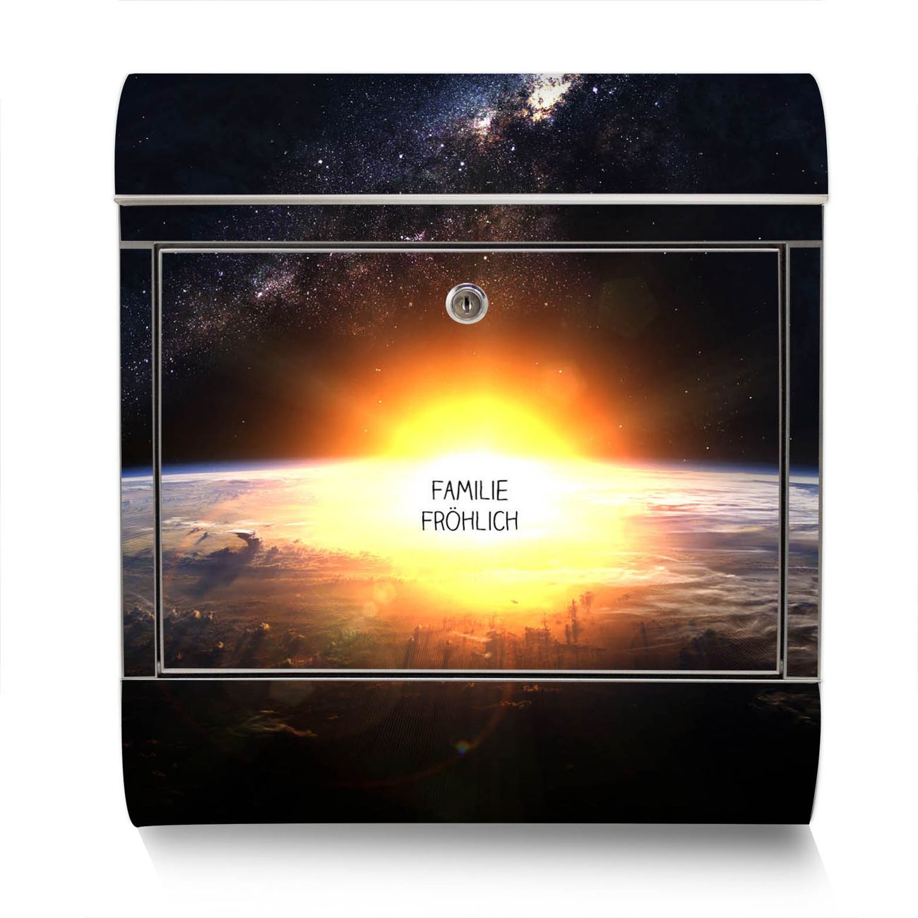 Standbriefkasten Edelstahl Sonne im Weltall