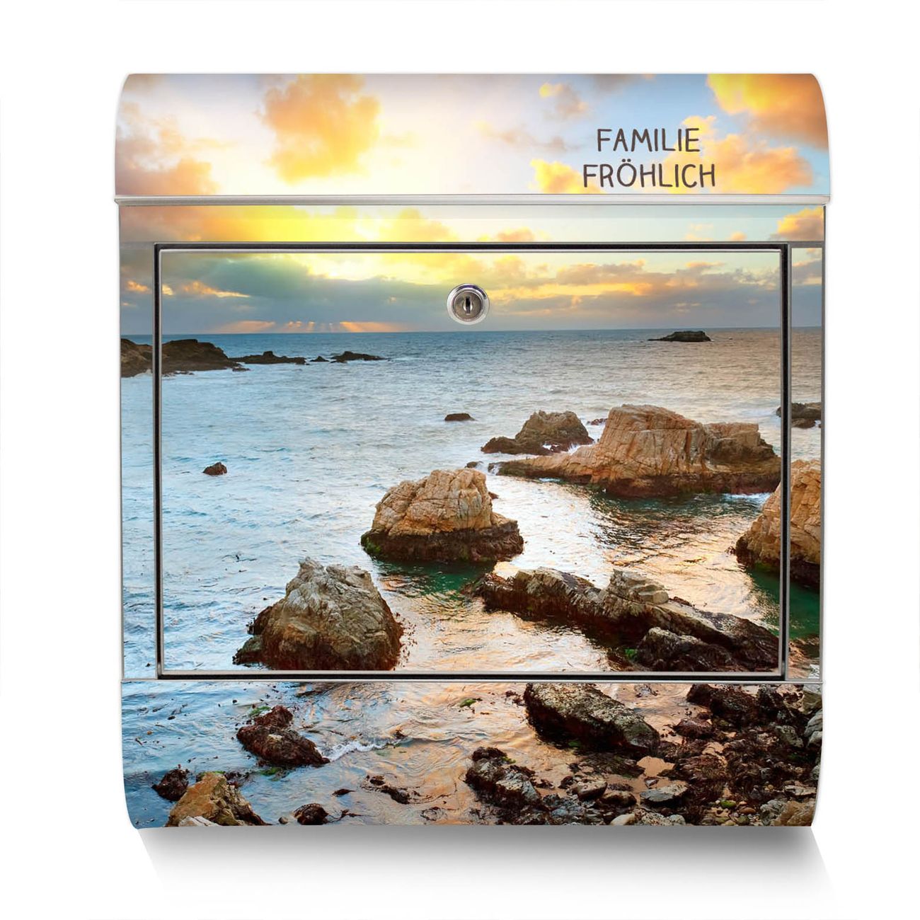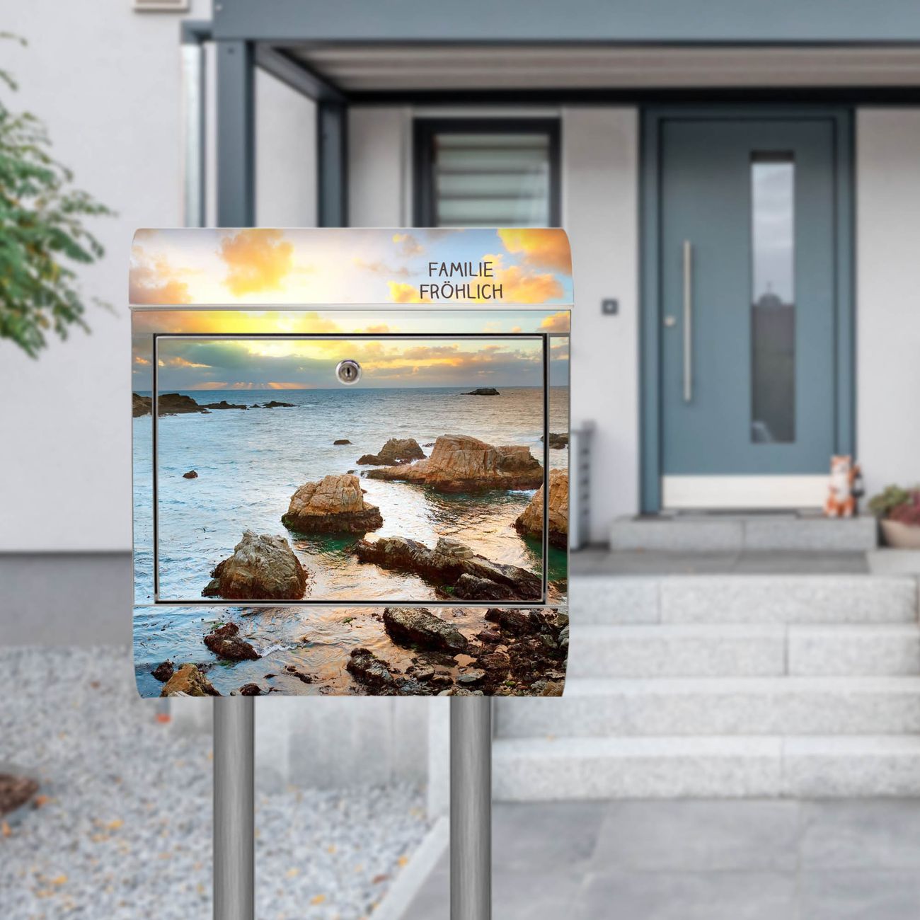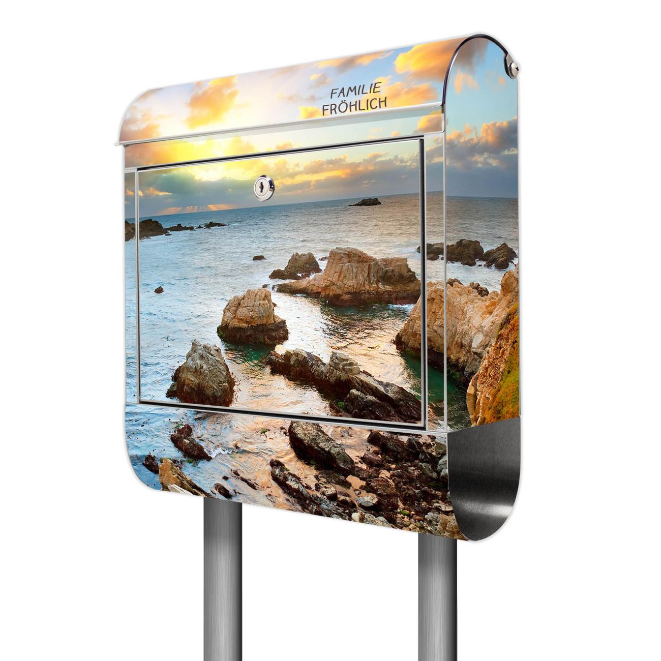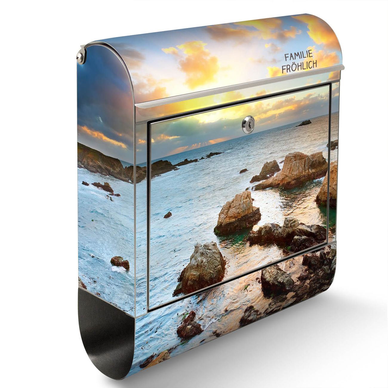 Standbriefkasten Edelstahl Sonnenaufgang am Meer