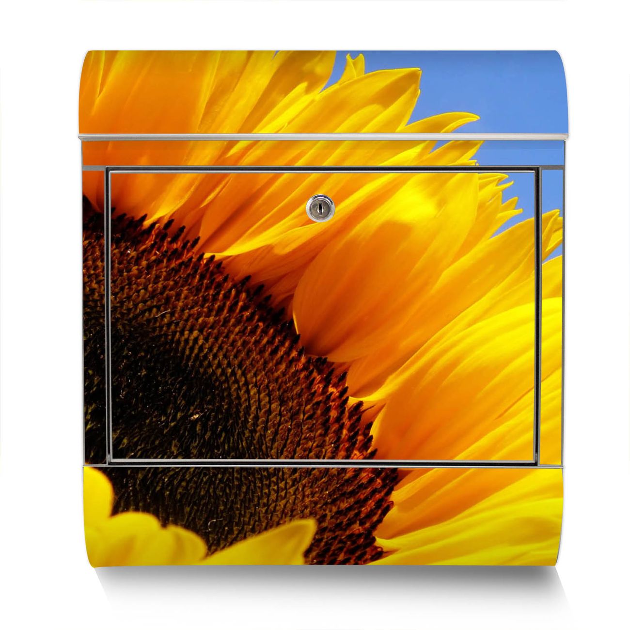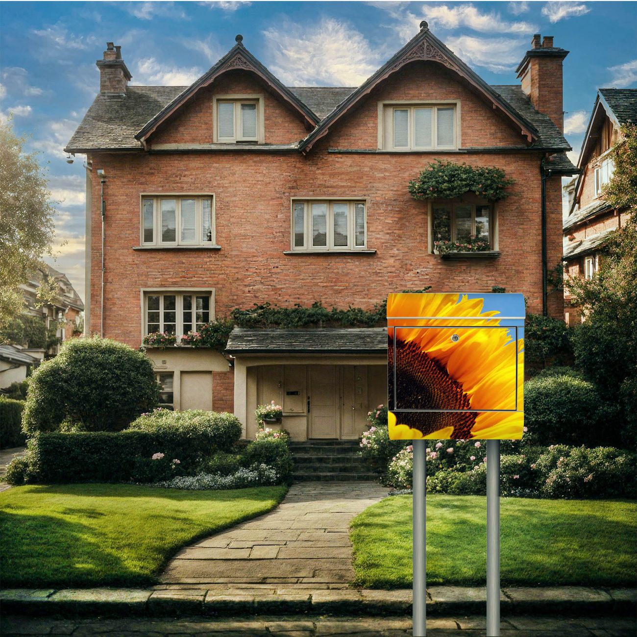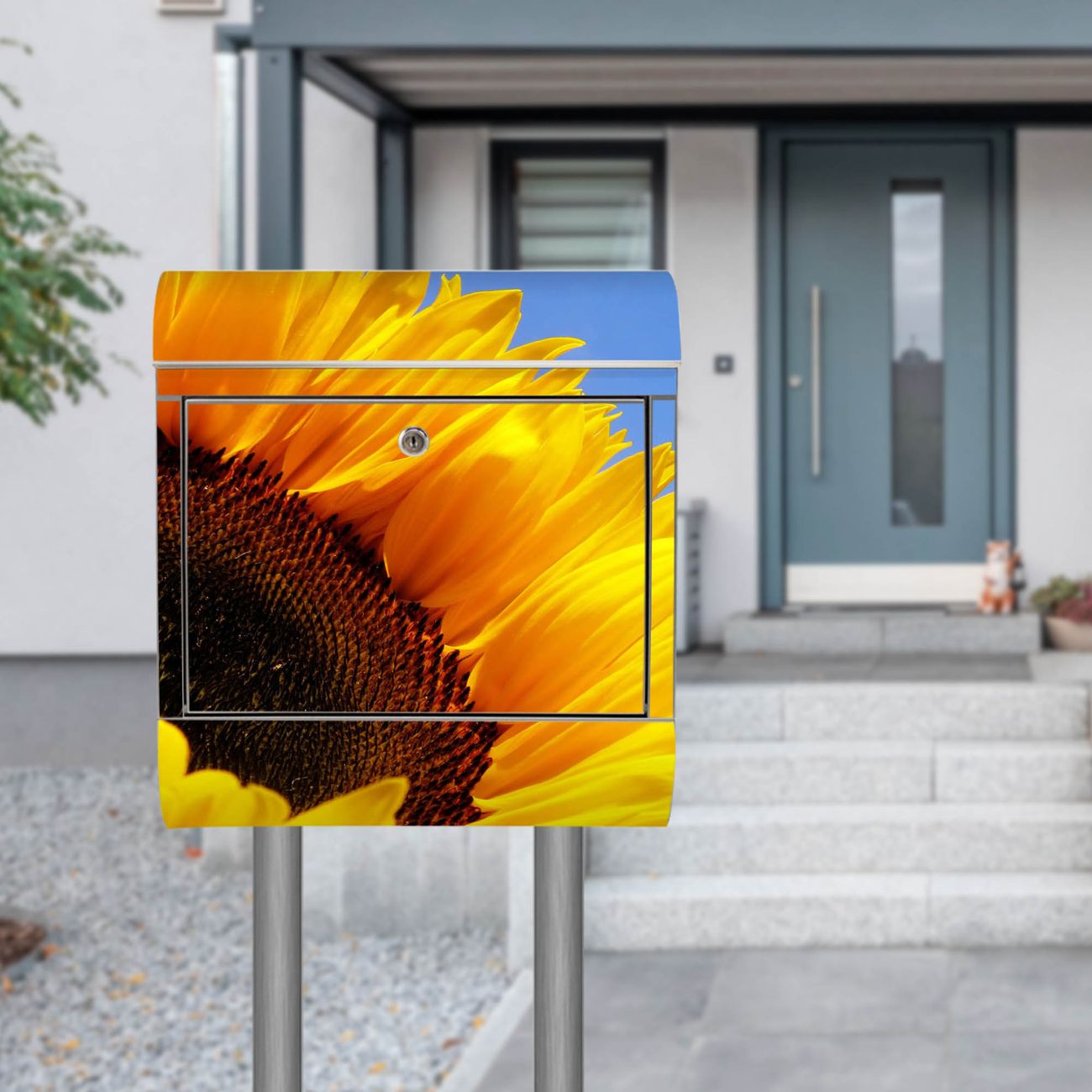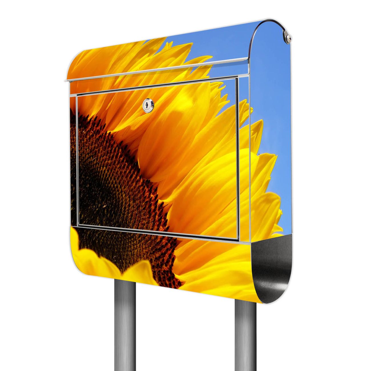Der Motivstandbriefkasten hat ein sehr ansprechendes und ausgefallenes Design, damit entlocken Sie Ihren Nachbarn und dem Postboten ein Lächeln. Heben Sie Sich ab von der tristen grauen Masse, ohne auf Funktionalität zu verzichten. Der Briefkasten besteht aus hochwertigem 18/0 Edelstahl und die Wetter- und UV-resistenten Folie mit Sonnenblume Motiv ist zusätzlich mit einem Schutzlaminat überzogen. Der Standbriefkasten wird mit Montagematerial und zwei Schlüsseln geliefert.