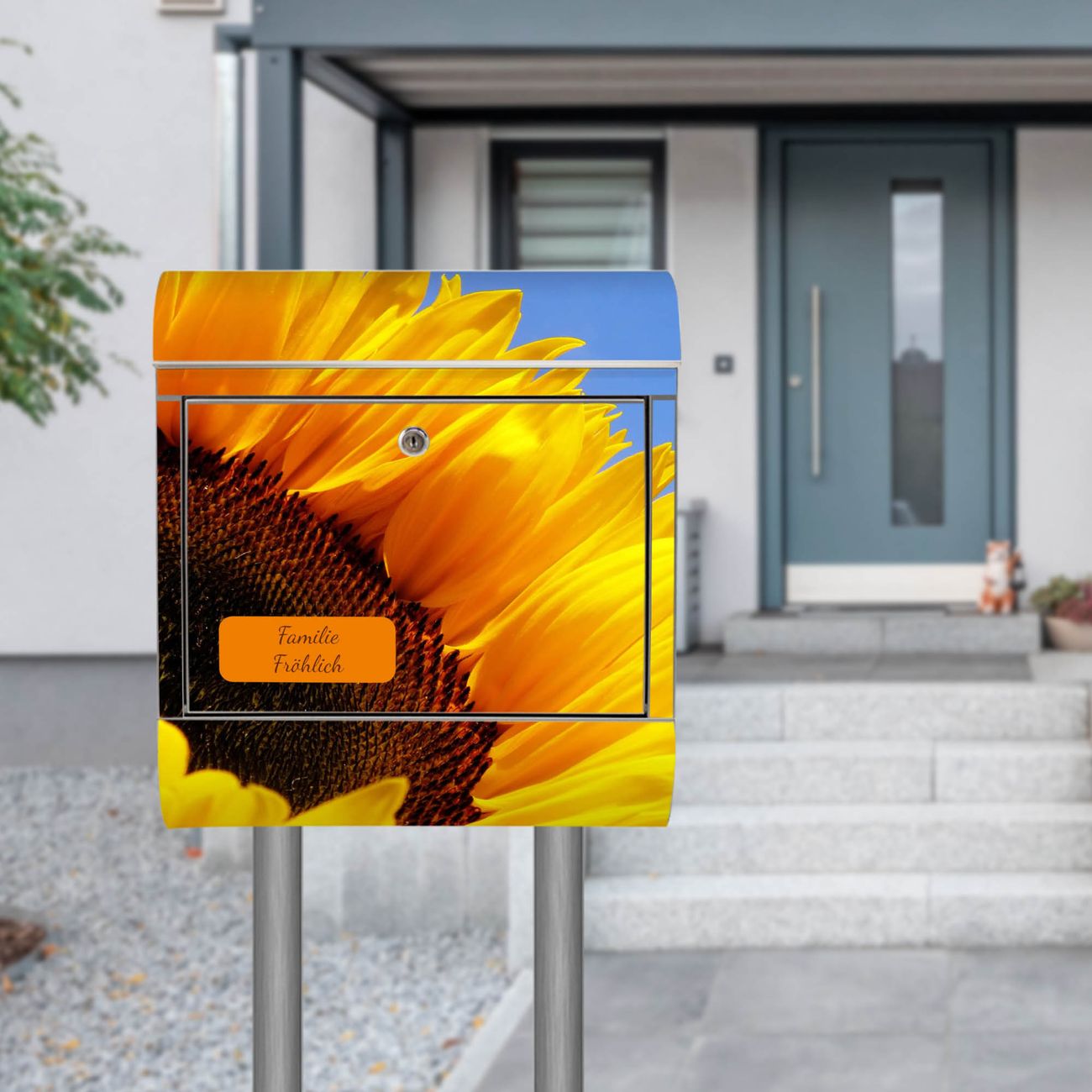 Der Motivstandbriefkasten hat ein sehr ansprechendes und ausgefallenes Design, damit entlocken Sie Ihren Nachbarn und dem Postboten ein Lächeln. Heben Sie Sich ab von der tristen grauen Masse, ohne auf Funktionalität zu verzichten. Der Briefkasten besteht aus hochwertigem 18/0 Edelstahl und die Wetter- und UV-resistenten Folie mit Sonnenblume Motiv ist zusätzlich mit einem Schutzlaminat überzogen. Der Standbriefkasten wird mit Montagematerial und zwei Schlüsseln geliefert.