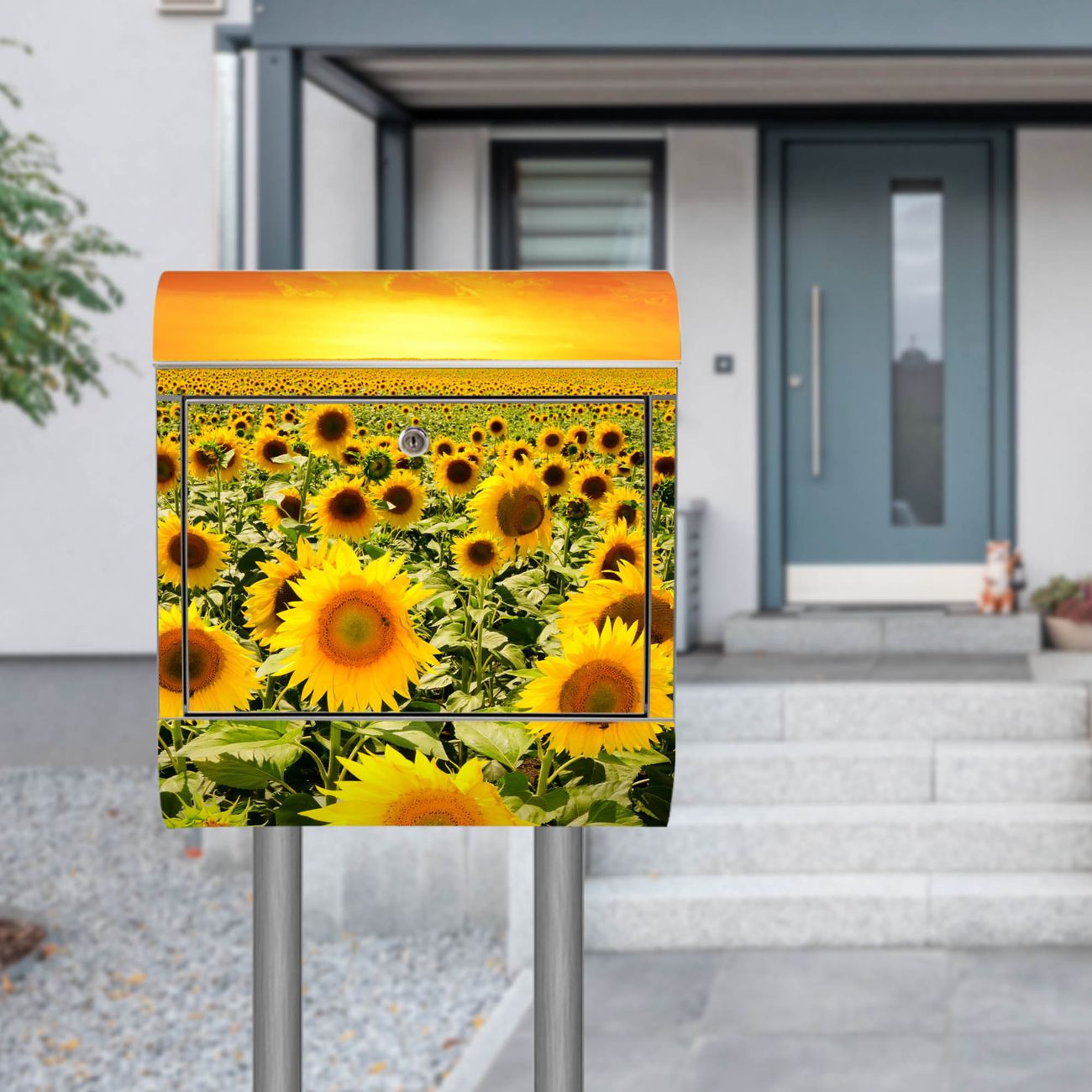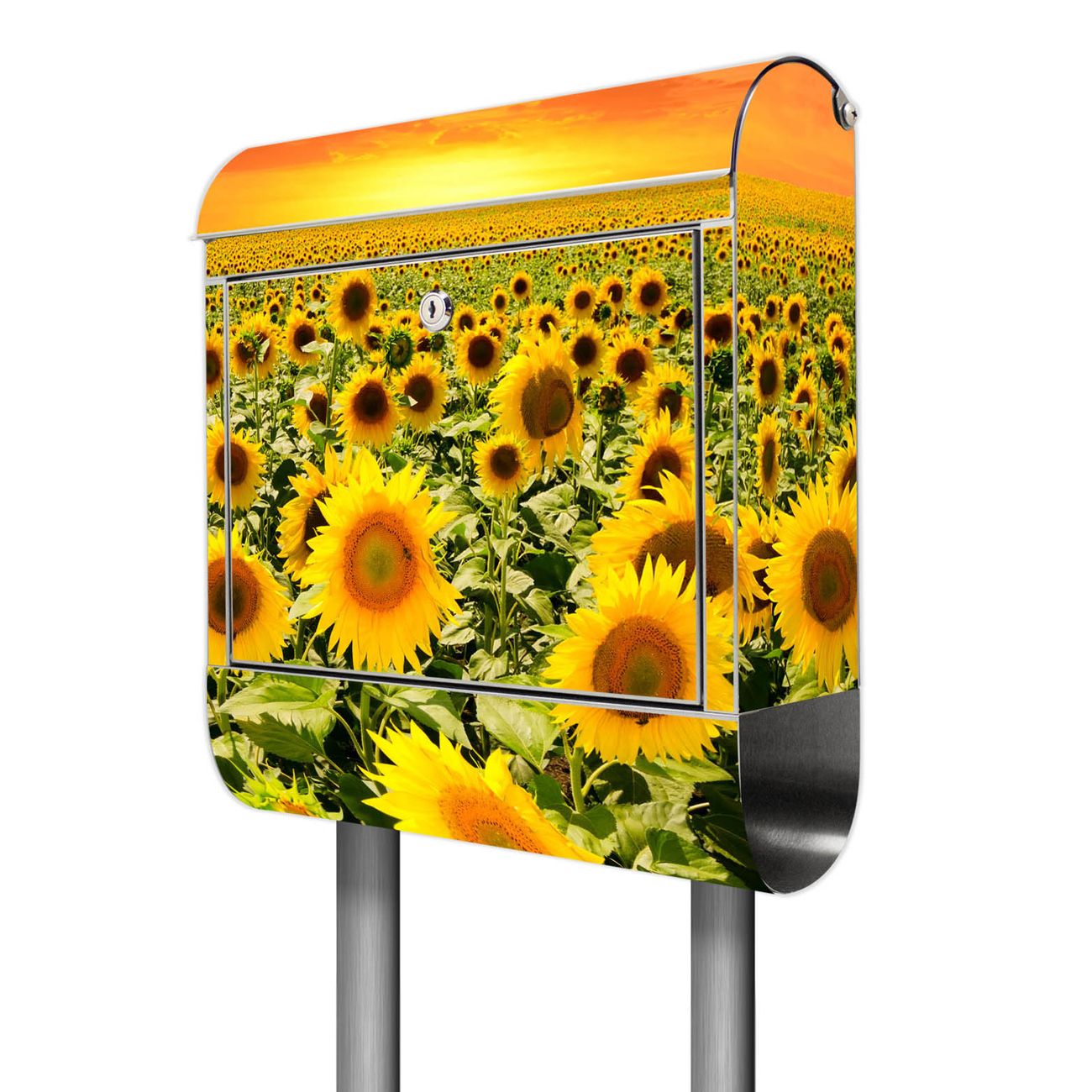 Standbriefkasten Edelstahl Sonnenblumenmeer