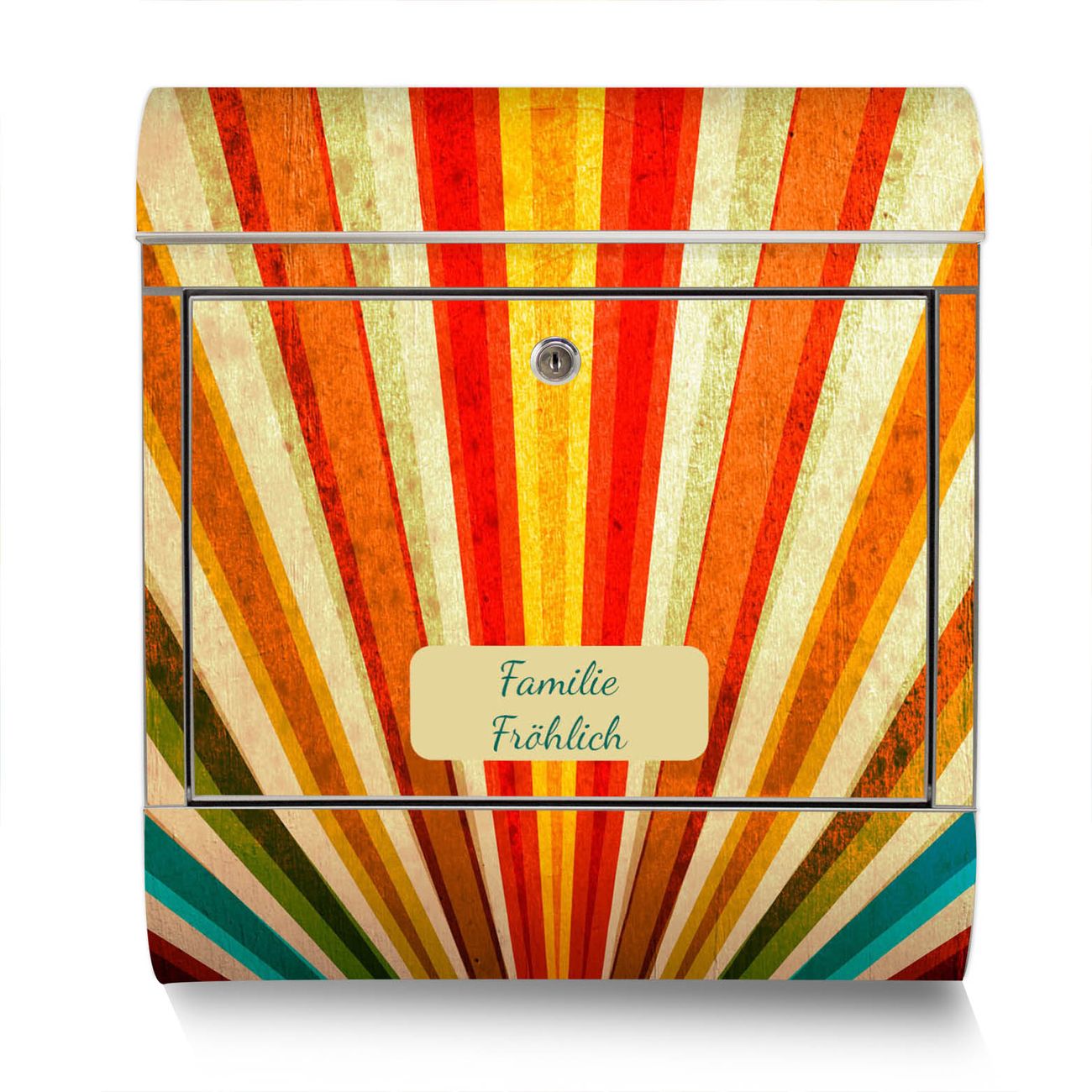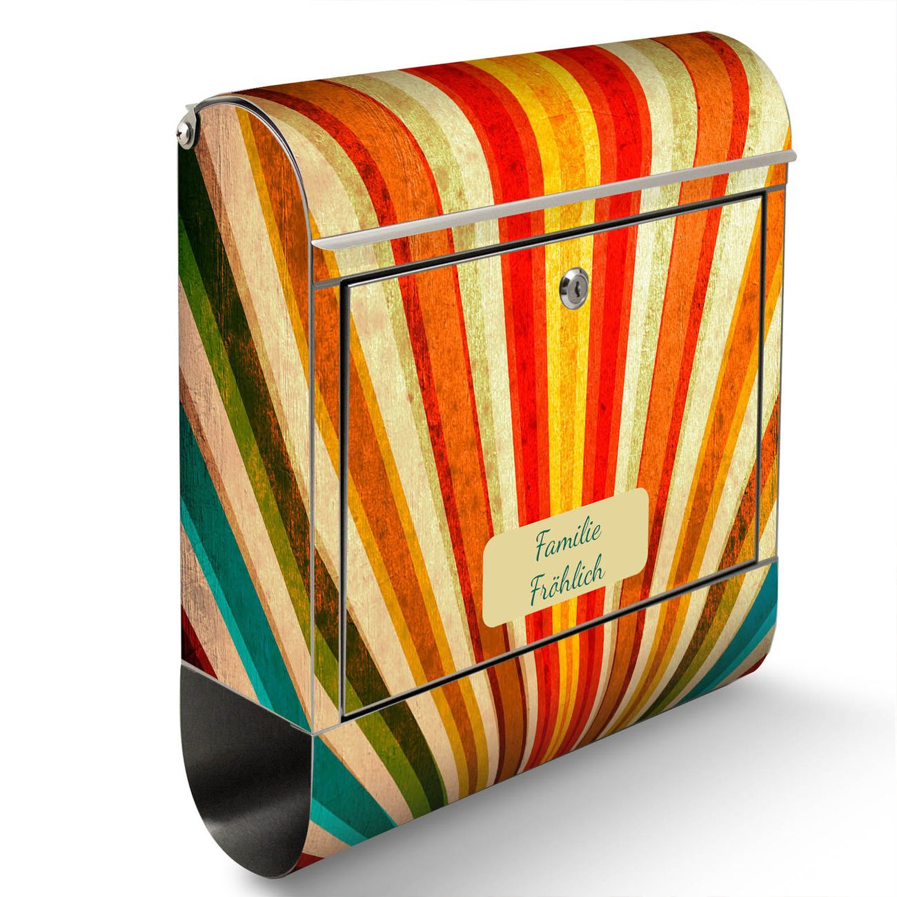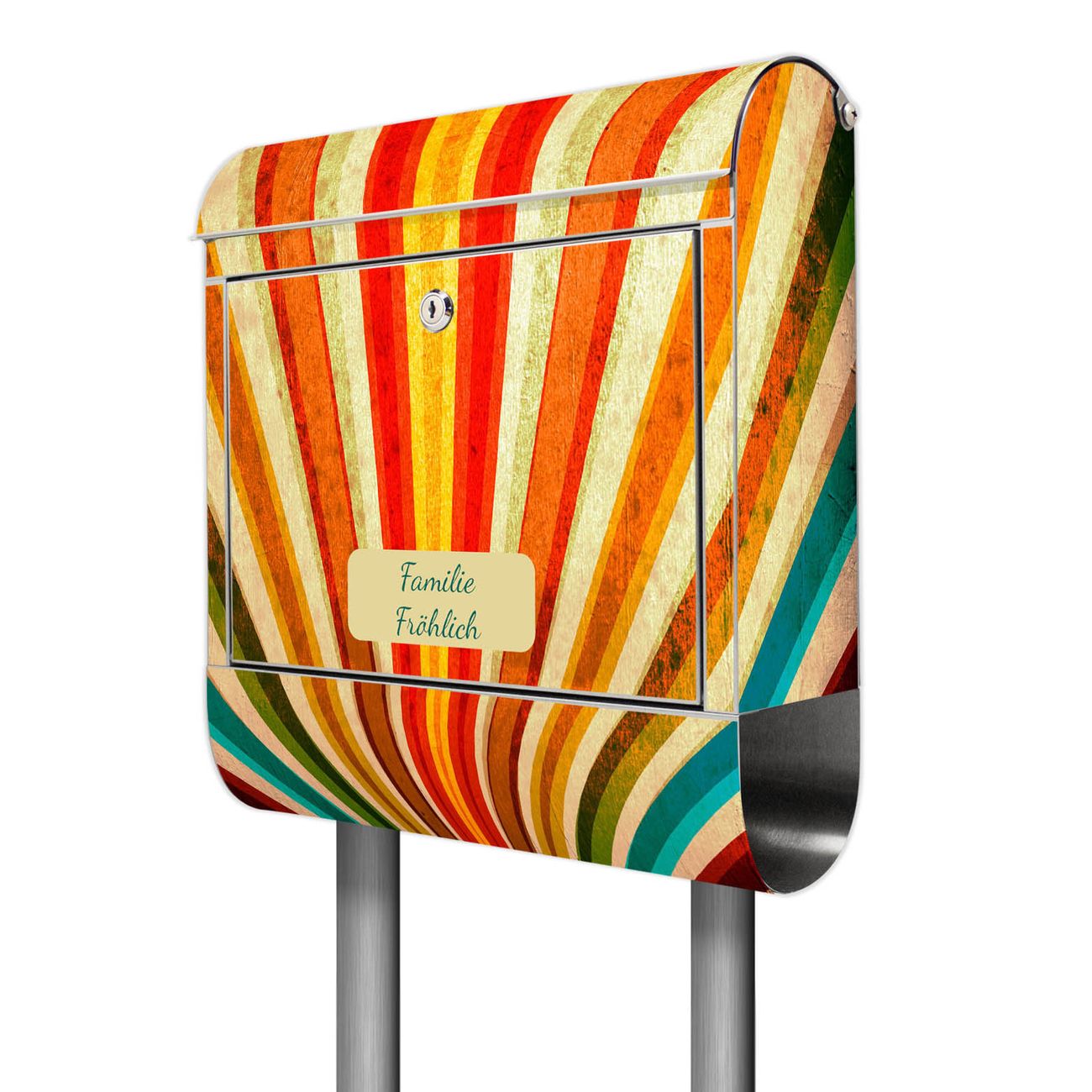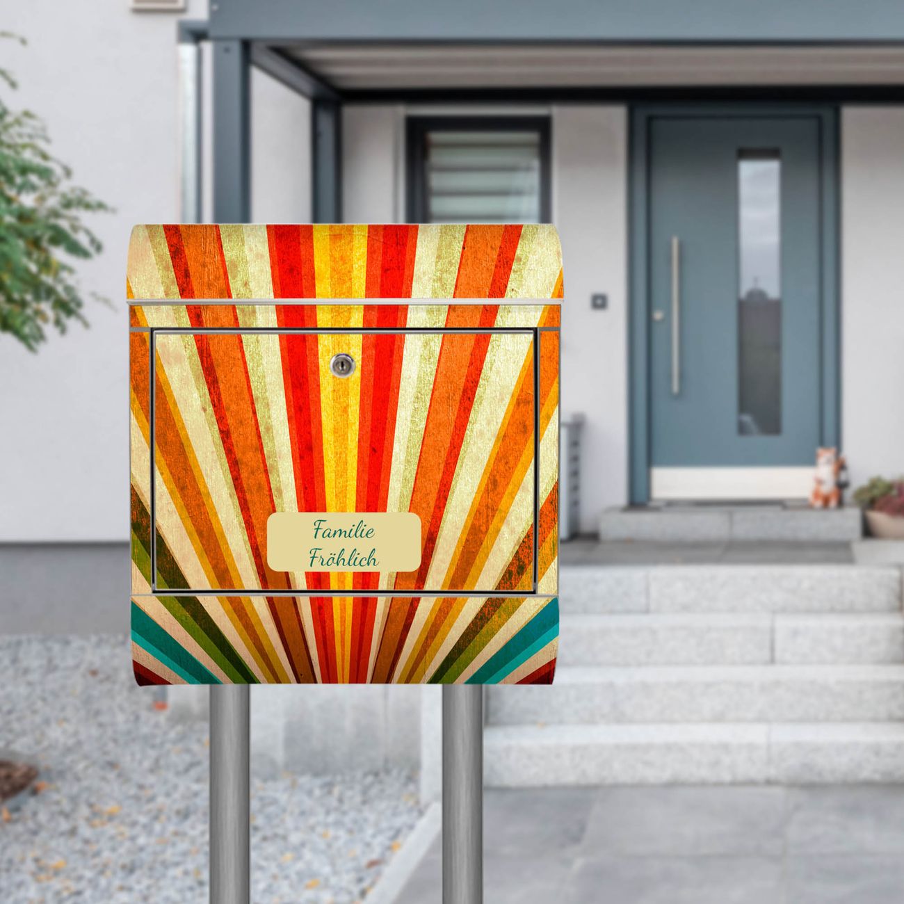 Der Motivstandbriefkasten hat ein sehr ansprechendes und ausgefallenes Design, damit entlocken Sie Ihren Nachbarn und dem Postboten ein Lächeln. Heben Sie Sich ab von der tristen grauen Masse, ohne auf Funktionalität zu verzichten. Der Briefkasten besteht aus hochwertigem 18/0 Edelstahl und die Wetter- und UV-resistenten Folie mit Sonnenuntergang Abstrakt Motiv ist zusätzlich mit einem Schutzlaminat überzogen. Der Standbriefkasten wird mit Montagematerial und zwei Schlüsseln geliefert.