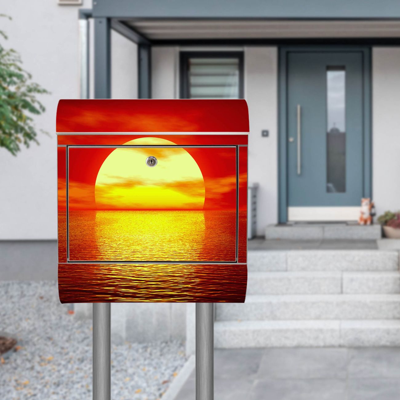 Standbriefkasten Edelstahl Sonnenuntergang