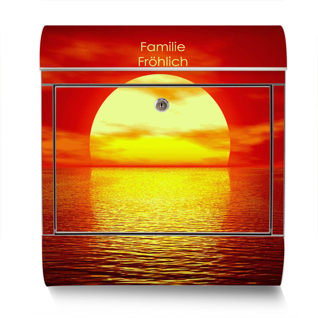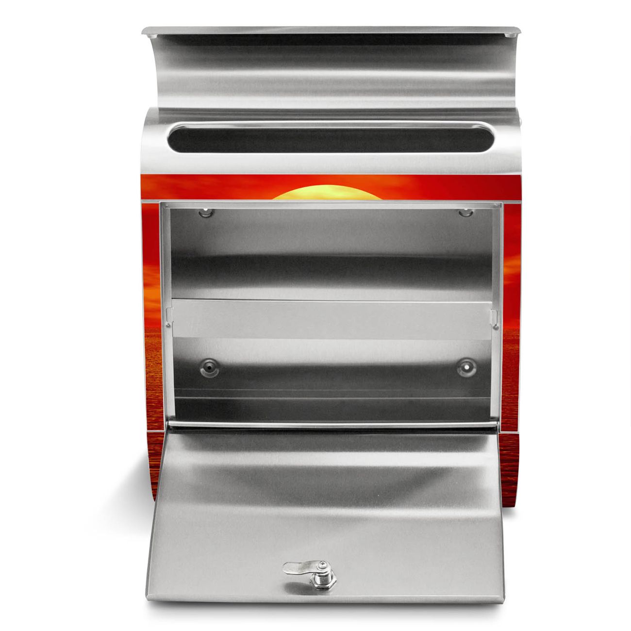 Der Motivstandbriefkasten hat ein sehr ansprechendes und ausgefallenes Design, damit entlocken Sie Ihren Nachbarn und dem Postboten ein Lächeln. Heben Sie Sich ab von der tristen grauen Masse, ohne auf Funktionalität zu verzichten. Der Briefkasten besteht aus hochwertigem 18/0 Edelstahl und die Wetter- und UV-resistenten Folie mit Sonnenuntergang Motiv ist zusätzlich mit einem Schutzlaminat überzogen. Der Standbriefkasten wird mit Montagematerial und zwei Schlüsseln geliefert.