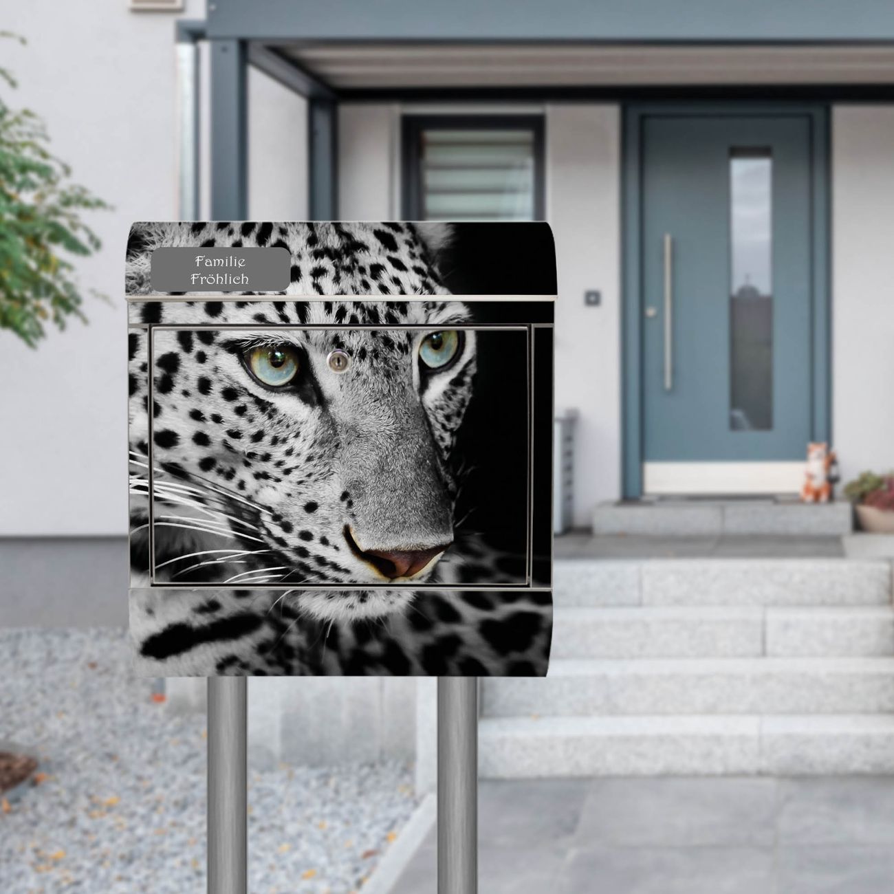 Der Motivstandbriefkasten hat ein sehr ansprechendes und ausgefallenes Design, damit entlocken Sie Ihren Nachbarn und dem Postboten ein Lächeln. Heben Sie Sich ab von der tristen grauen Masse, ohne auf Funktionalität zu verzichten. Der Briefkasten besteht aus hochwertigem 18/0 Edelstahl und die Wetter- und UV-resistenten Folie mit Sophie Motiv ist zusätzlich mit einem Schutzlaminat überzogen. Der Standbriefkasten wird mit Montagematerial und zwei Schlüsseln geliefert.
