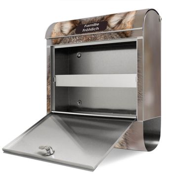 Der banjado Edelstahl Standbriefkasten mit Motiv Soraya und eigenem Wunschtext bietet Ihnen mit seinem Fassungsvermögen genügend Platz auch für große A4 Sendungen. Das integrierte Zeitungsfach eignet sich hervorragend, um unkompliziert die Tageszeitung zu fassen.