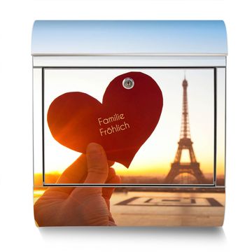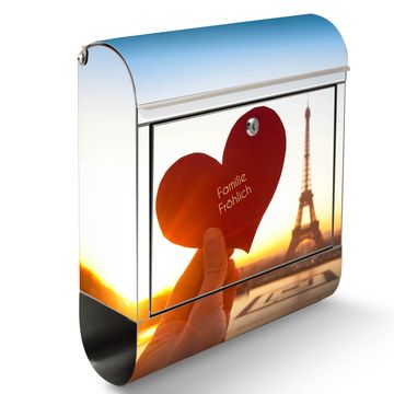 Der banjado Edelstahl Standbriefkasten mit Motiv Stadt Der Liebe und eigenem Wunschtext bietet Ihnen mit seinem Fassungsvermögen genügend Platz auch für große A4 Sendungen. Das integrierte Zeitungsfach eignet sich hervorragend, um unkompliziert die Tageszeitung zu fassen.