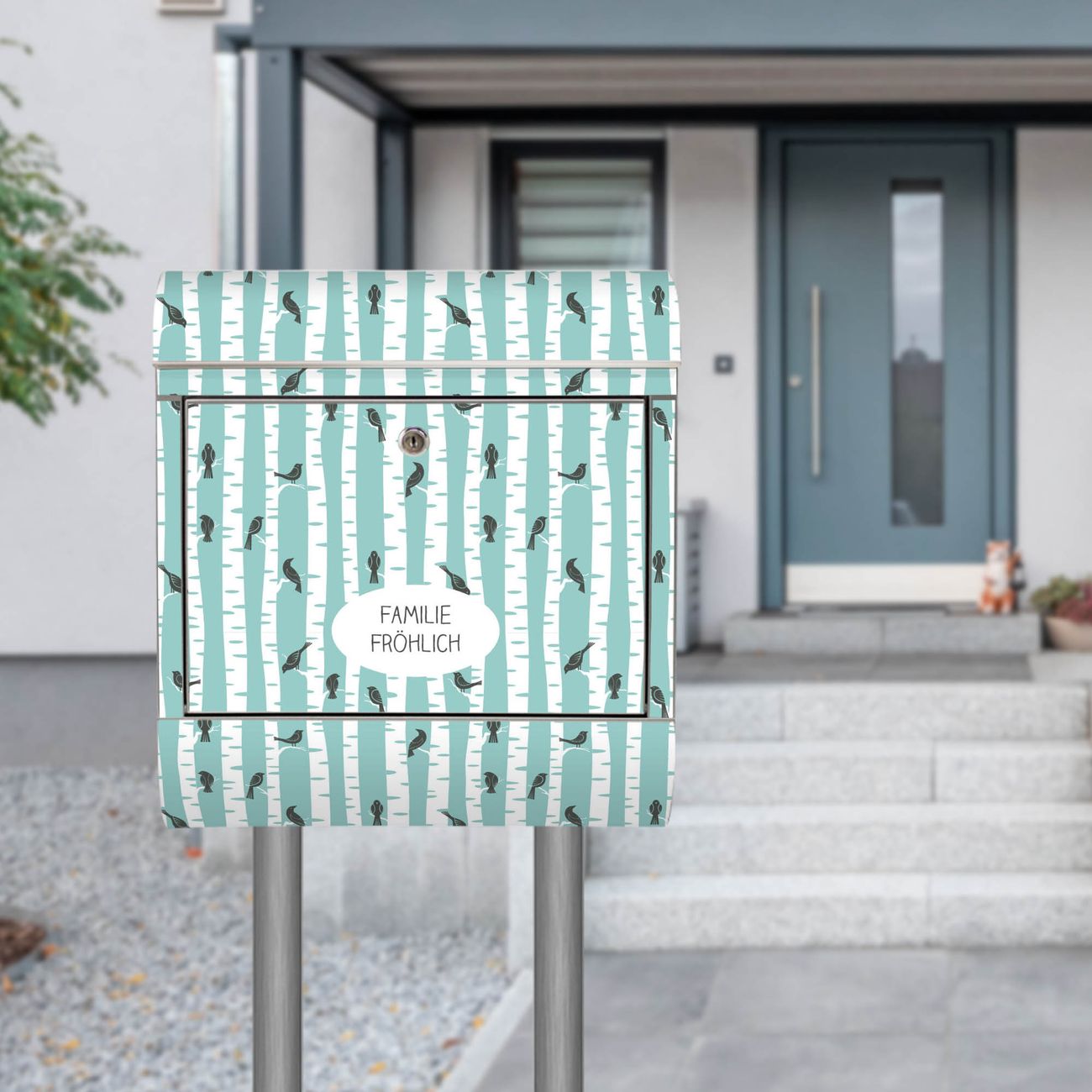 Der Motivstandbriefkasten hat ein sehr ansprechendes und ausgefallenes Design, damit entlocken Sie Ihren Nachbarn und dem Postboten ein Lächeln. Heben Sie Sich ab von der tristen grauen Masse, ohne auf Funktionalität zu verzichten. Der Briefkasten besteht aus hochwertigem 18/0 Edelstahl und die Wetter- und UV-resistenten Folie mit Stare Und Birken Motiv ist zusätzlich mit einem Schutzlaminat überzogen. Der Standbriefkasten wird mit Montagematerial und zwei Schlüsseln geliefert.