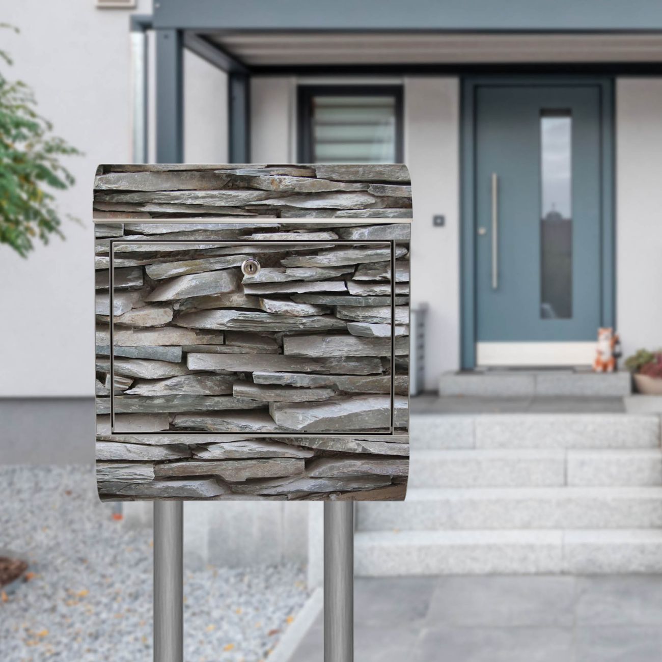 Standbriefkasten Edelstahl Steinwand
