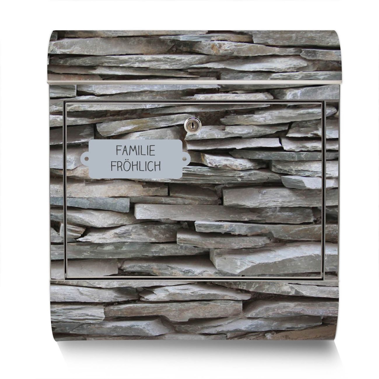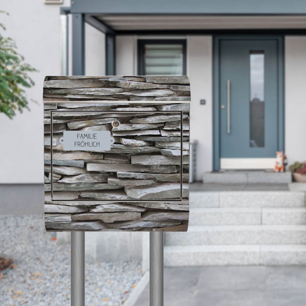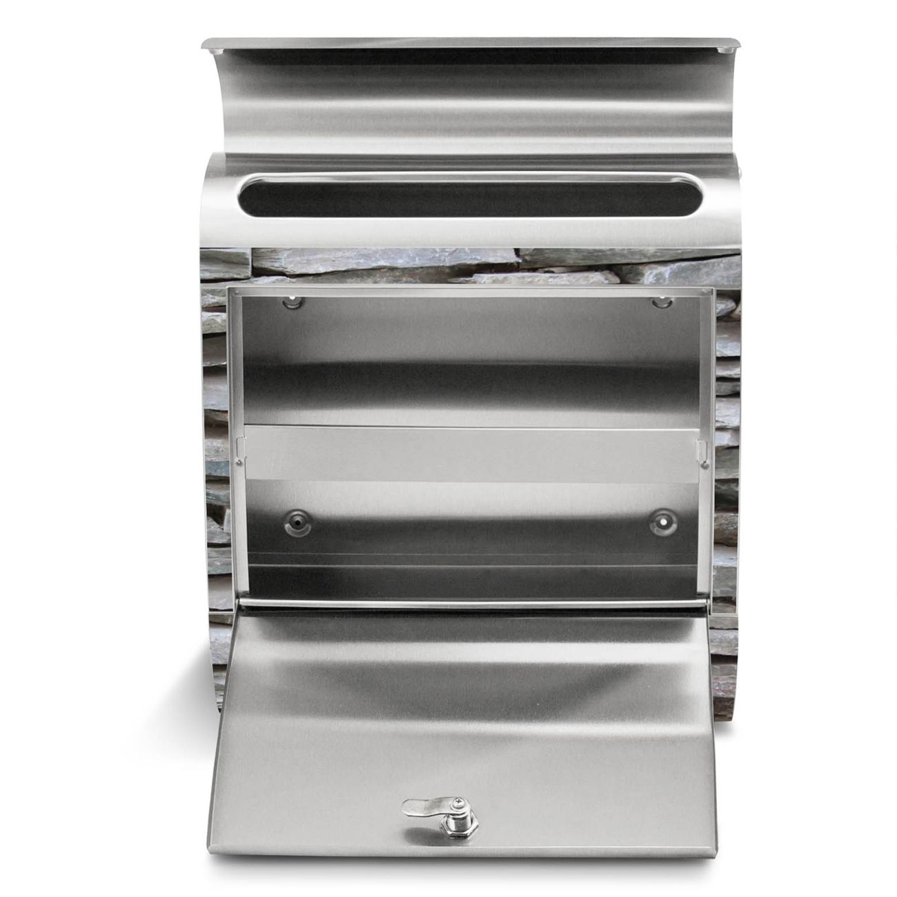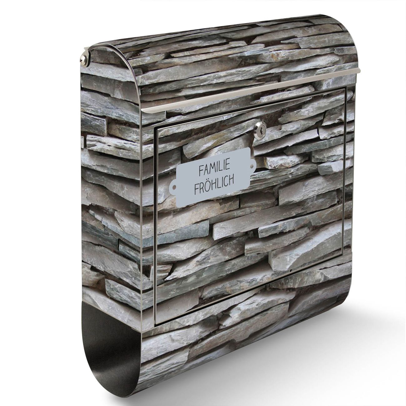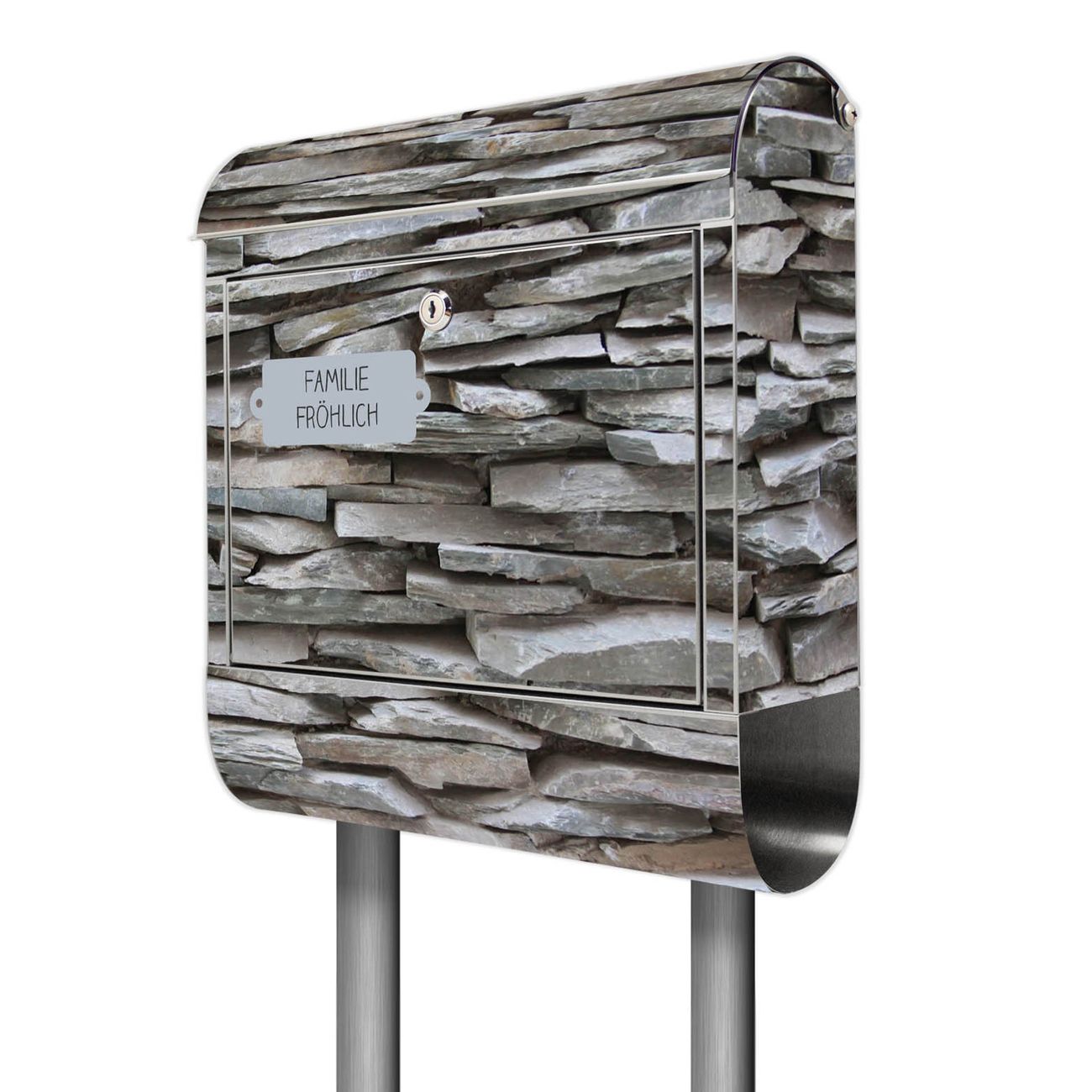 Der banjado Edelstahl Standbriefkasten mit Motiv Steinwand und eigenem Wunschtext bietet Ihnen mit seinem Fassungsvermögen genügend Platz auch für große A4 Sendungen. Das integrierte Zeitungsfach eignet sich hervorragend, um unkompliziert die Tageszeitung zu fassen.