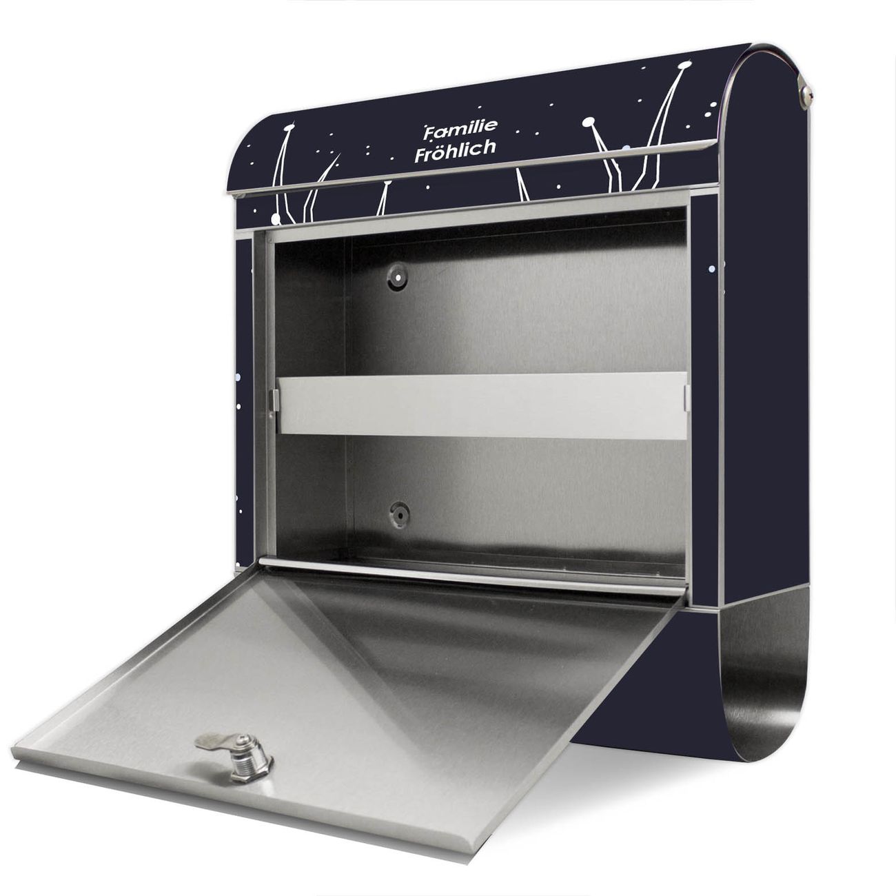 Wir empfehlen Ihnen, den Standbriefkasten einzubetonieren, um einen optimalen Stand zu gewährleisten. Die Größe des Standbriefkastens bietet genügend Platz für Sendungen aller Art, das hochwertige Edelstahl ist rostfrei und die Motivfolie absolut wetterfest.