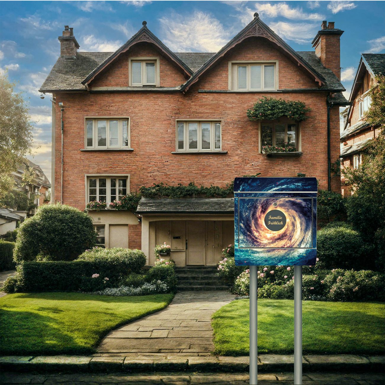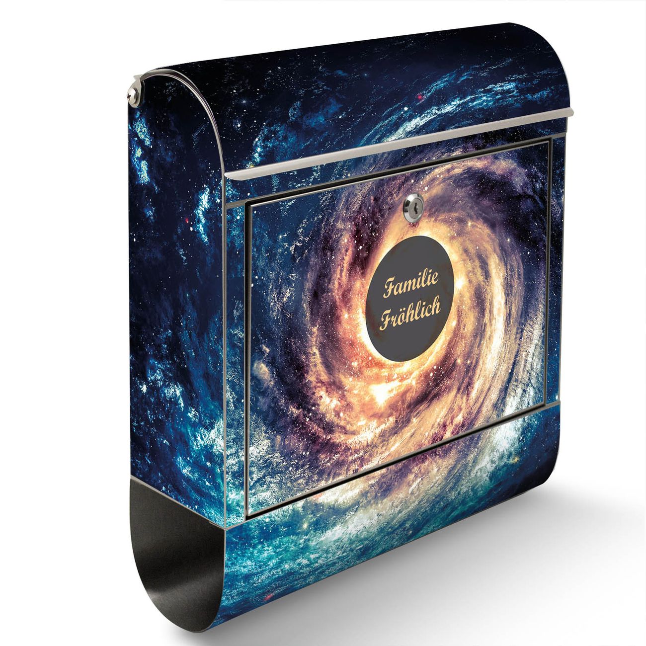 Der banjado Edelstahl Standbriefkasten mit Motiv Sternenwirbel und eigenem Wunschtext bietet Ihnen mit seinem Fassungsvermögen genügend Platz auch für große A4 Sendungen. Das integrierte Zeitungsfach eignet sich hervorragend, um unkompliziert die Tageszeitung zu fassen.