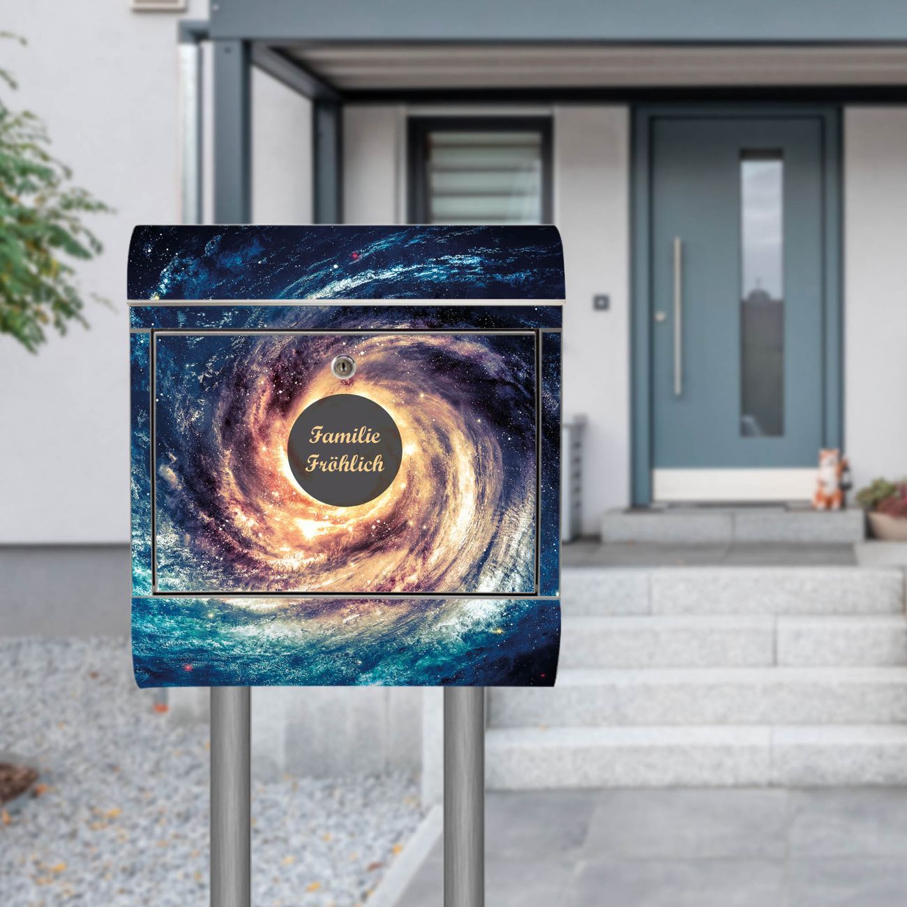 Der Motivstandbriefkasten hat ein sehr ansprechendes und ausgefallenes Design, damit entlocken Sie Ihren Nachbarn und dem Postboten ein Lächeln. Heben Sie Sich ab von der tristen grauen Masse, ohne auf Funktionalität zu verzichten. Der Briefkasten besteht aus hochwertigem 18/0 Edelstahl und die Wetter- und UV-resistenten Folie mit Sternenwirbel Motiv ist zusätzlich mit einem Schutzlaminat überzogen. Der Standbriefkasten wird mit Montagematerial und zwei Schlüsseln geliefert.