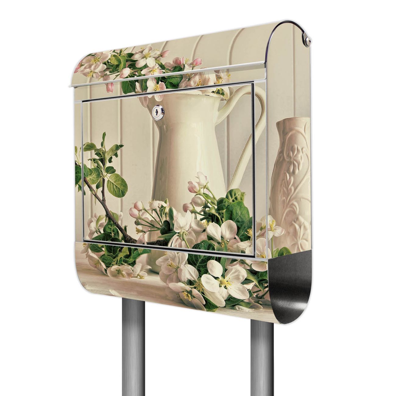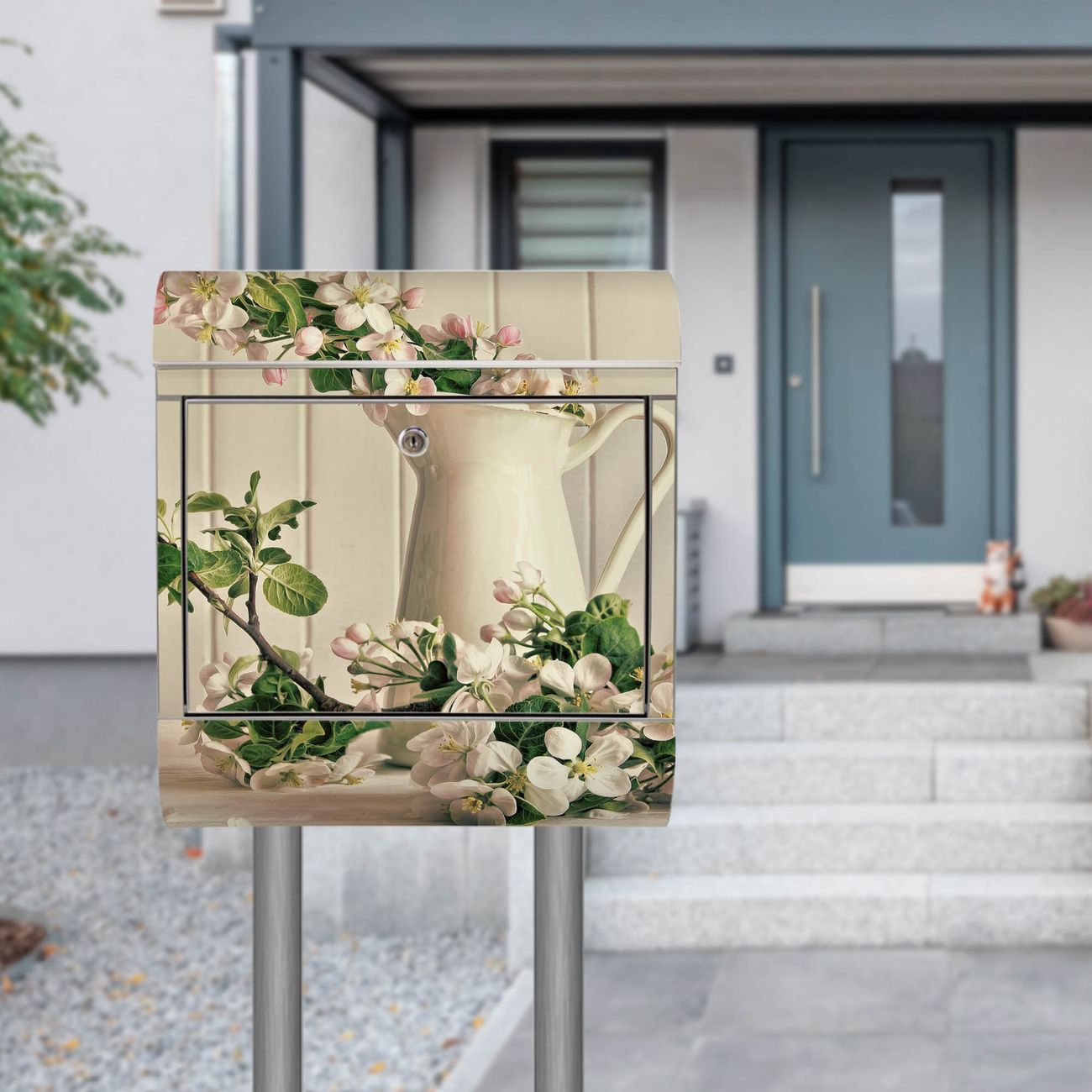 Standbriefkasten Edelstahl Stillleben Kirschblüten