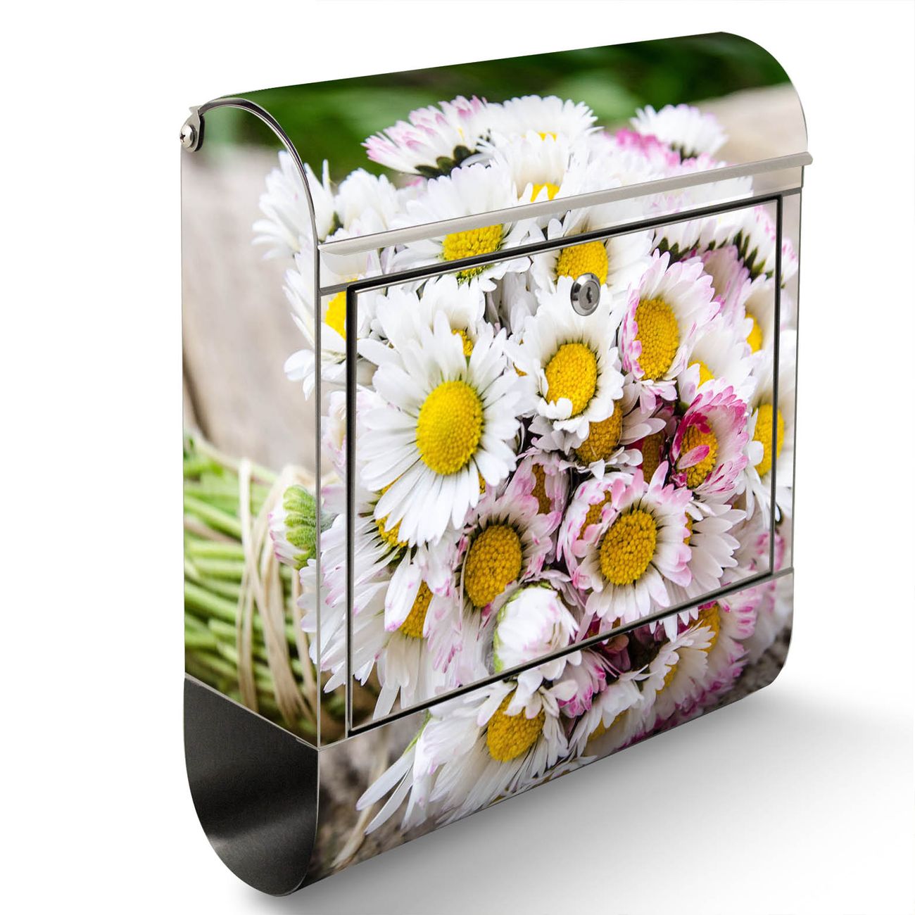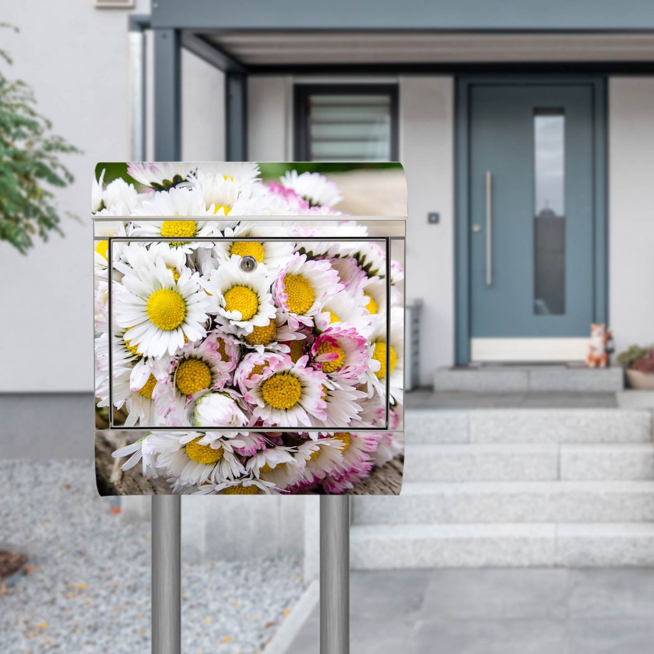 Standbriefkasten Edelstahl Strauß Gänseblümchen