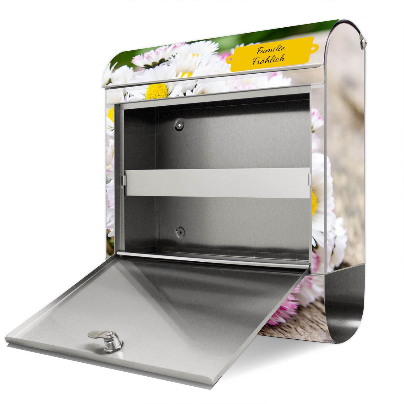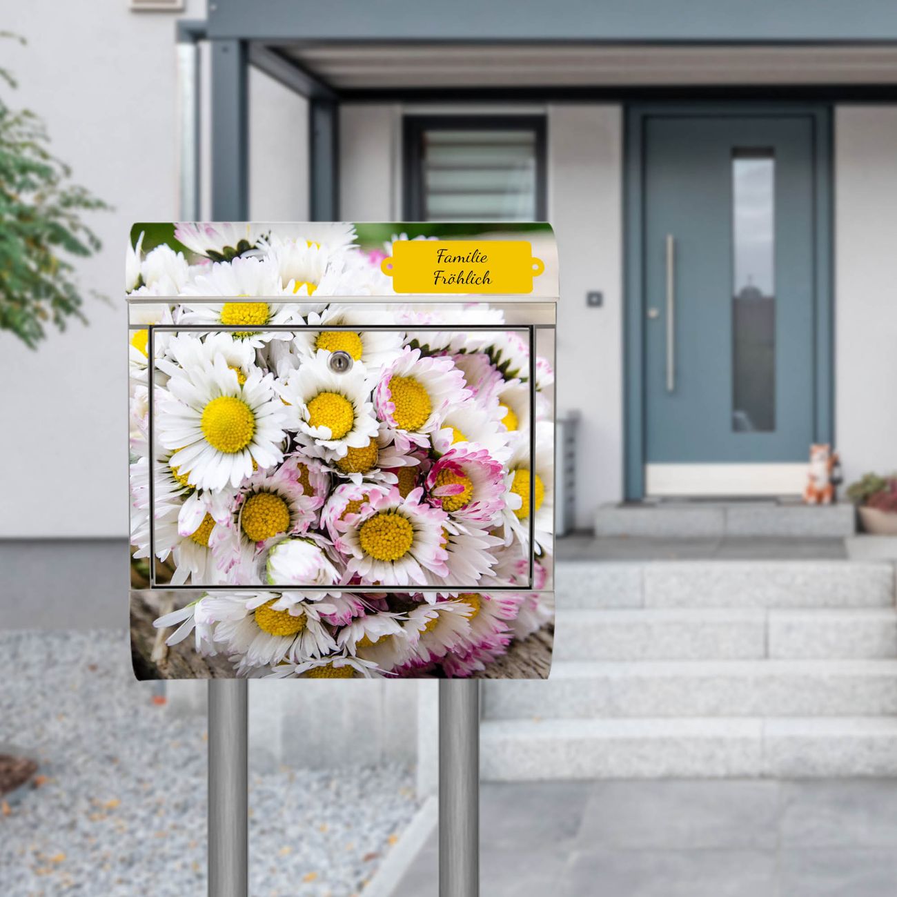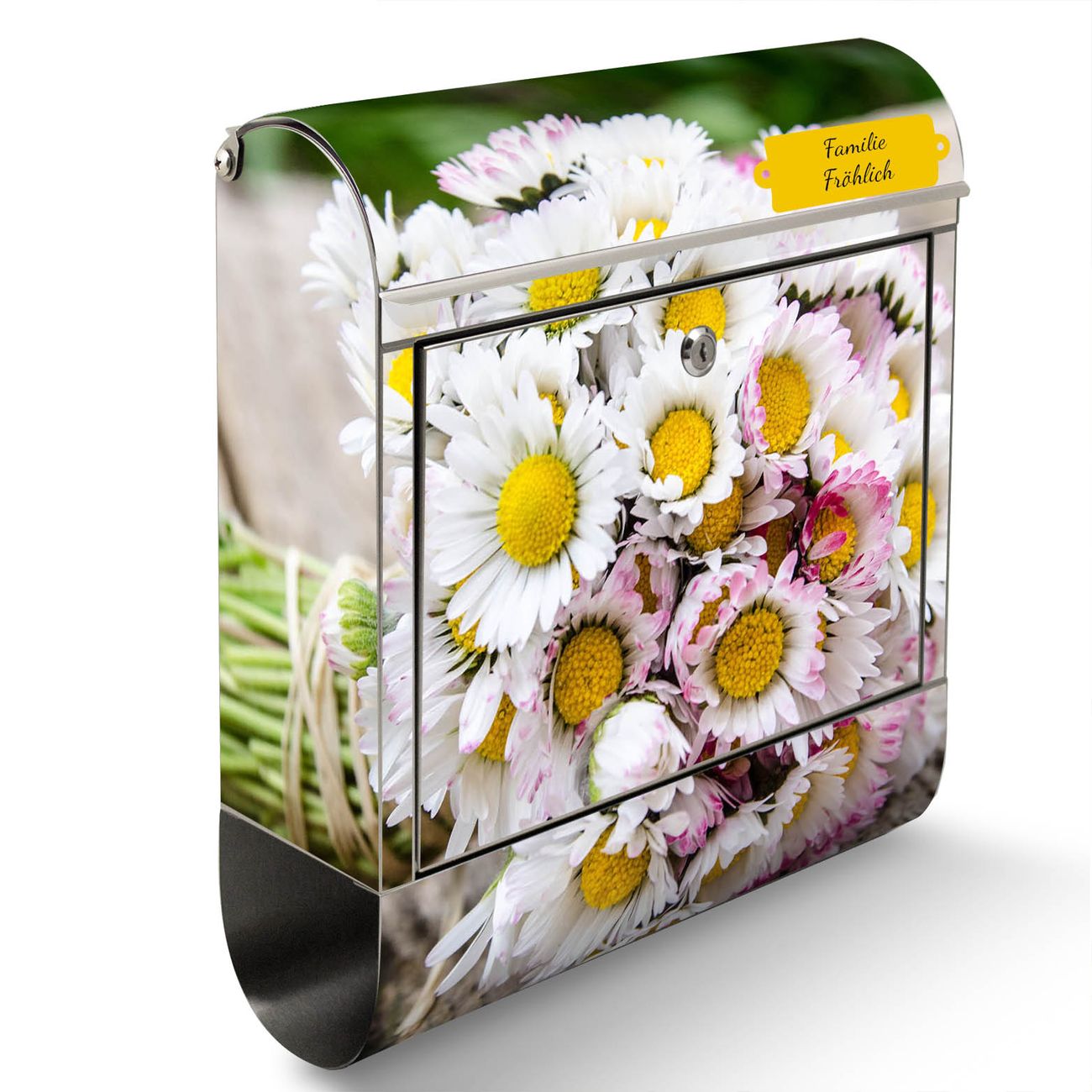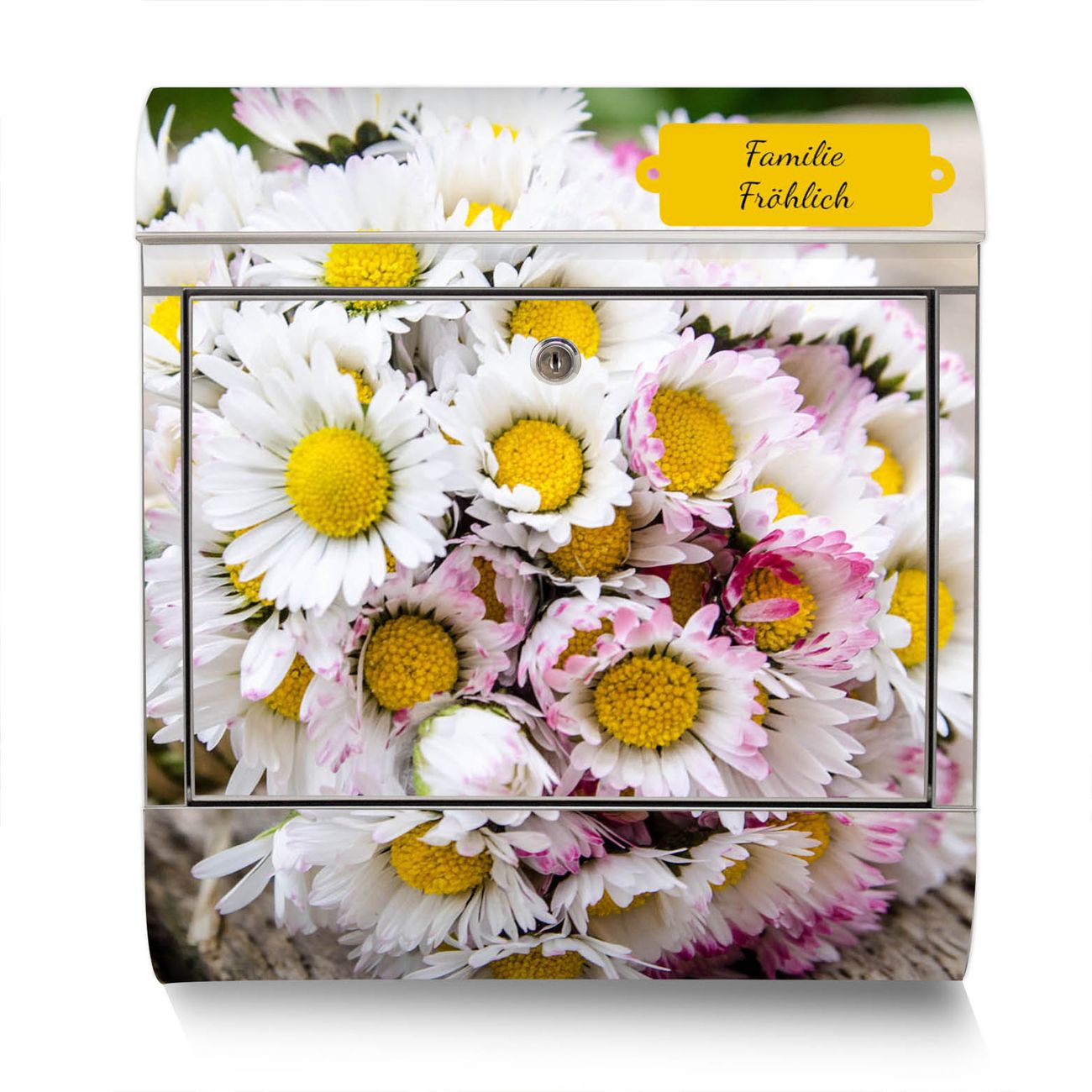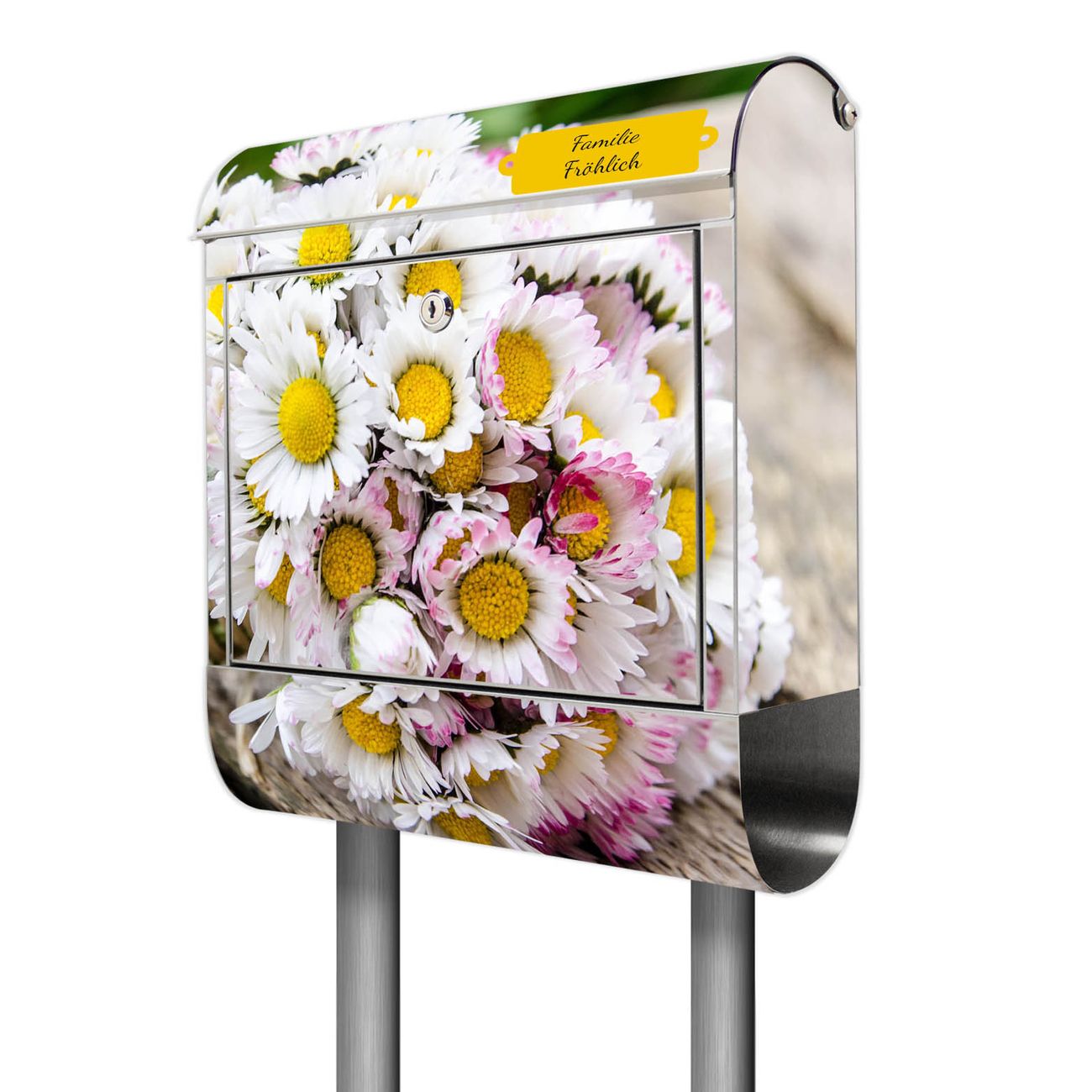 Standbriefkasten Edelstahl Strauß Gänseblümchen