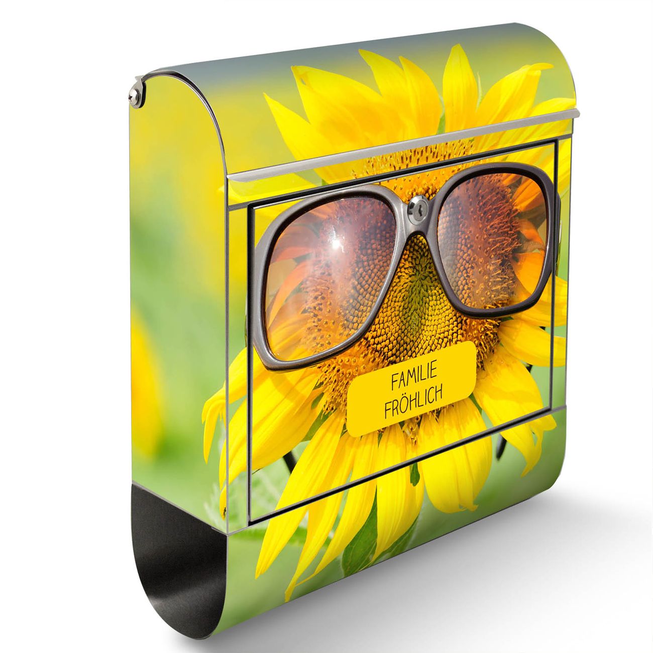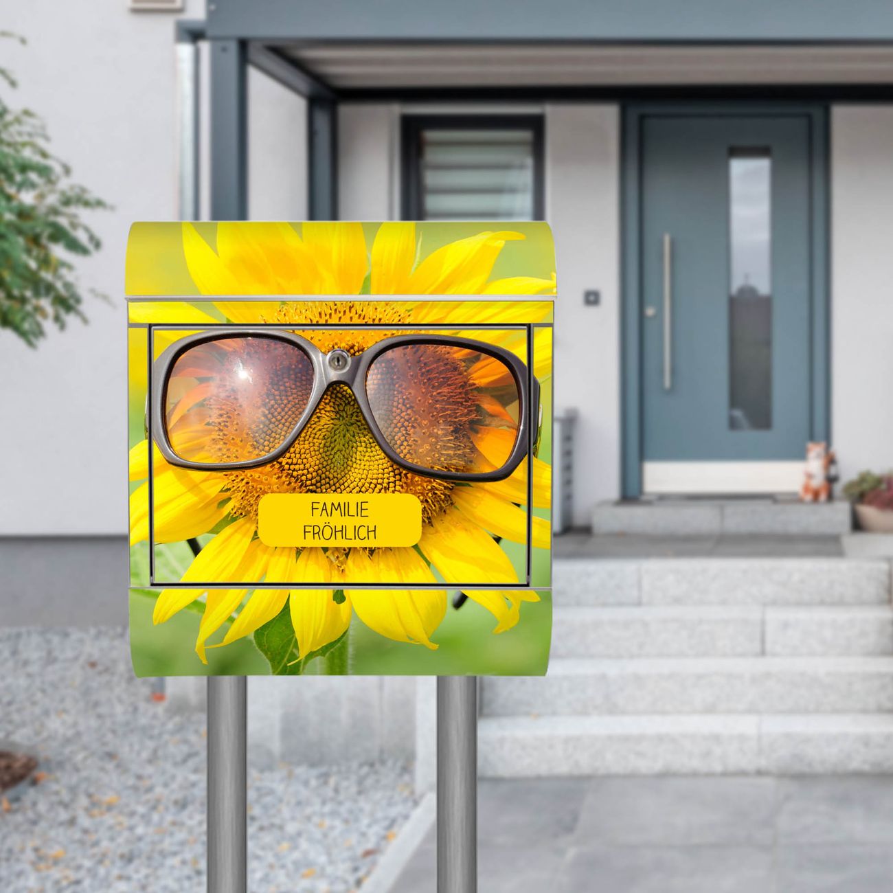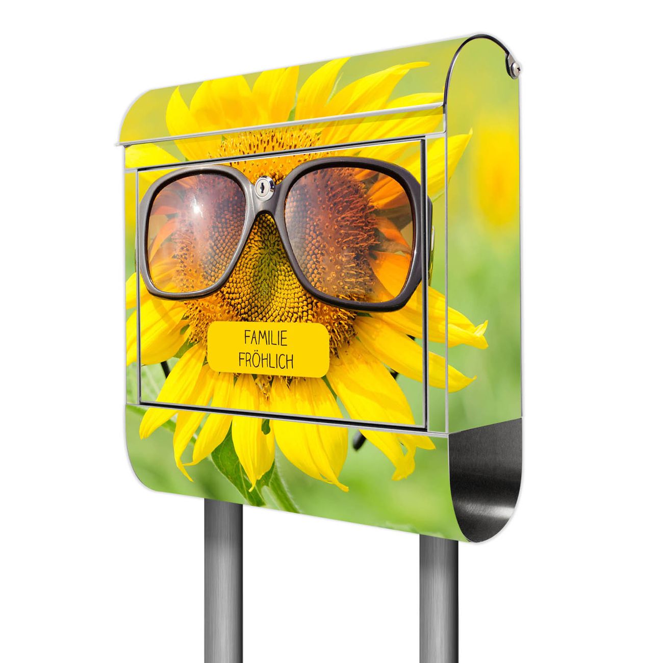 Der Motivstandbriefkasten hat ein sehr ansprechendes und ausgefallenes Design, damit entlocken Sie Ihren Nachbarn und dem Postboten ein Lächeln. Heben Sie Sich ab von der tristen grauen Masse, ohne auf Funktionalität zu verzichten. Der Briefkasten besteht aus hochwertigem 18/0 Edelstahl und die Wetter- und UV-resistenten Folie mit Sunny Motiv ist zusätzlich mit einem Schutzlaminat überzogen. Der Standbriefkasten wird mit Montagematerial und zwei Schlüsseln geliefert.
